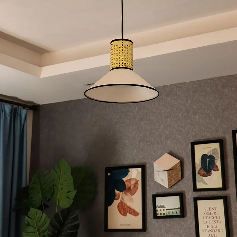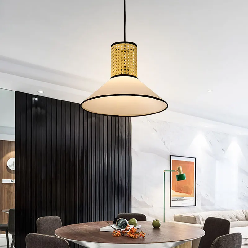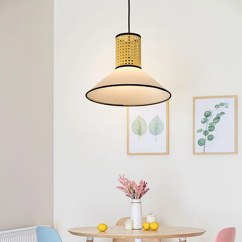 Meiyun Modern Drum Nordic LED Wooden Rattan Pendant Light Shade Home Design