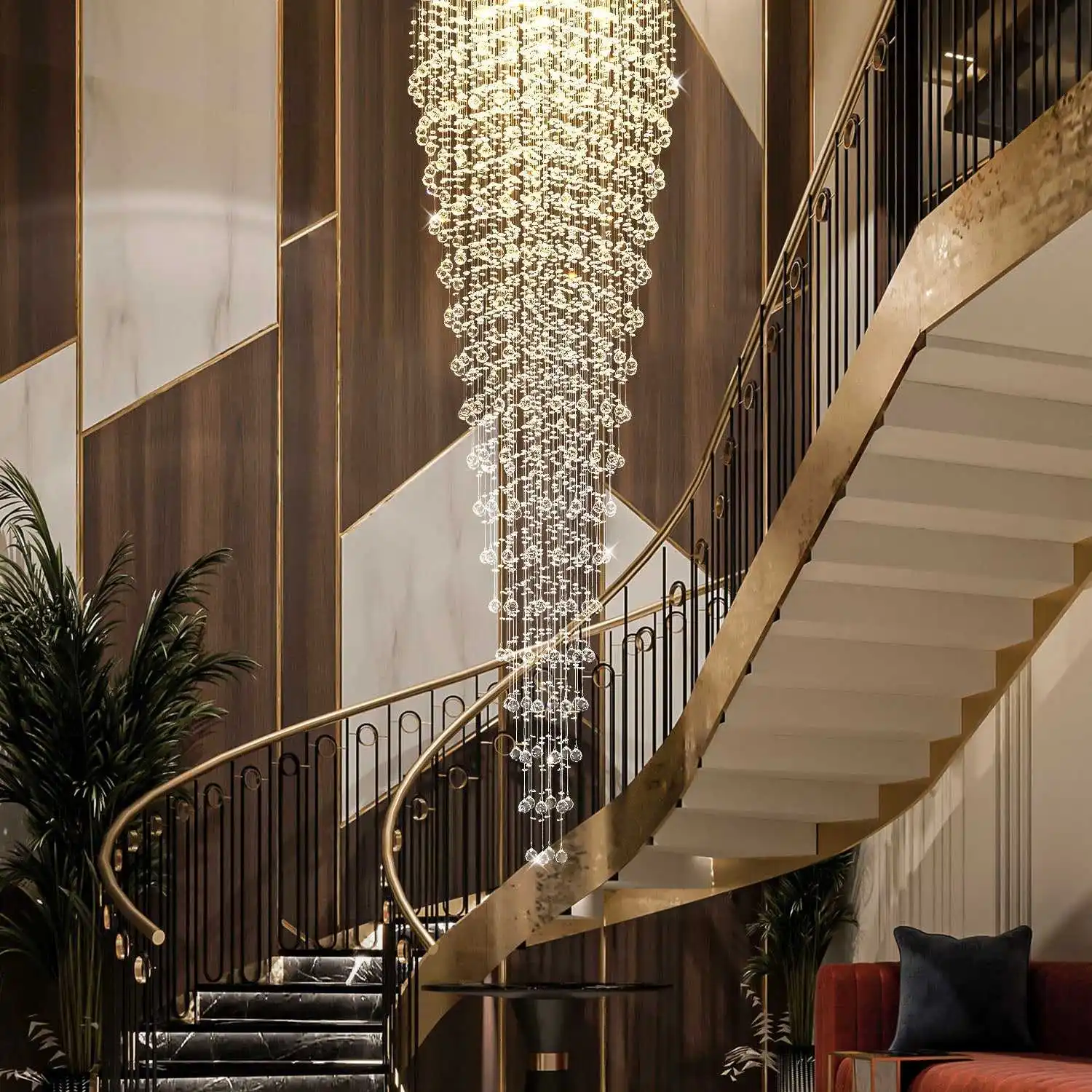Modern Luxury Aluminum Customized Pendant Light Stair extra Long Crystal Chandelier Over Stairs