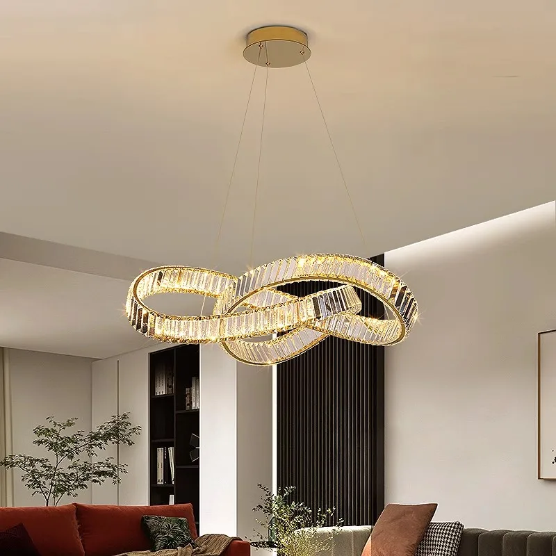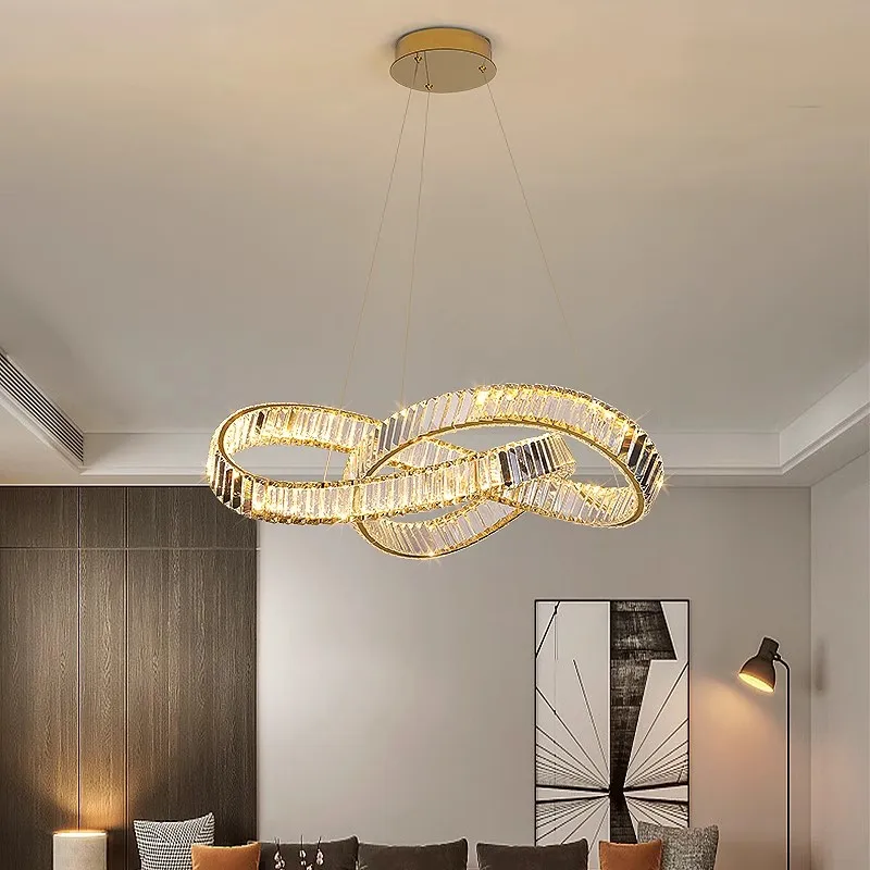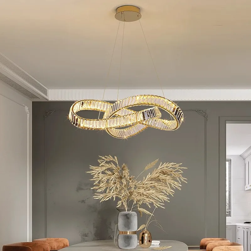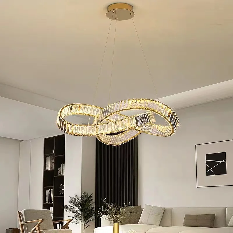 Modern Simple Atmosphere Living Room Crystal Chandelier Italian Light Luxury Dining Room Bedroom Ring Stainless Steel LED Lamps