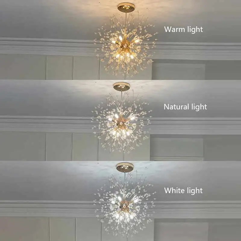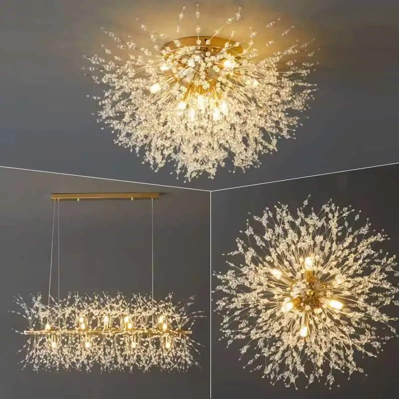 Modern Luxury Crystal Pendant Light Dandelion Decorative Hanging Lamp Suitable for Living Room Restaurant LED Crystal Chandelier