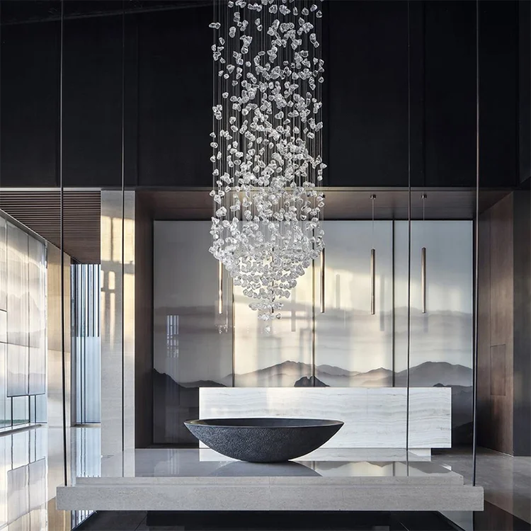 Zeal Lighting Long Stairwell Hanging Pendant Light Staircase Villa Duplex Stair High Ceiling Crystal Chandelier