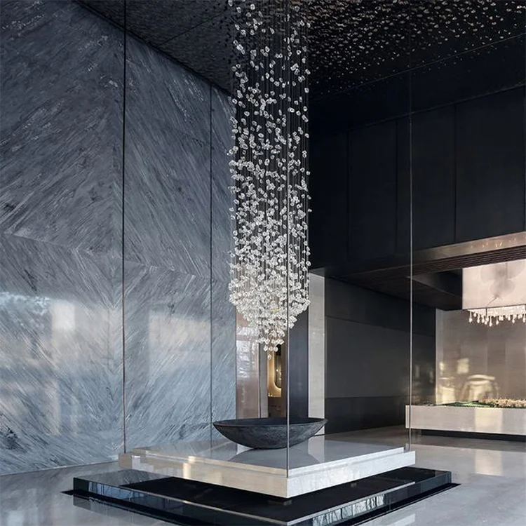 Zeal Lighting Hotel Lobby Hall Decorative Large Hanging Light Customized Long Gold Crystal Elegant Chandelier
