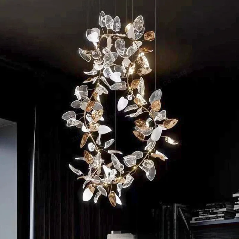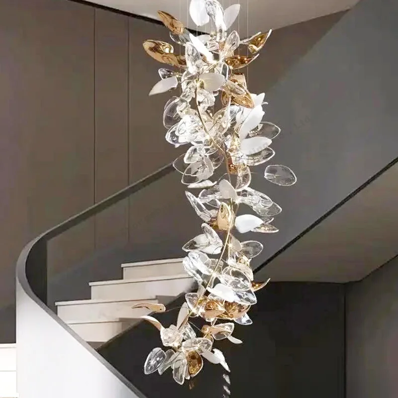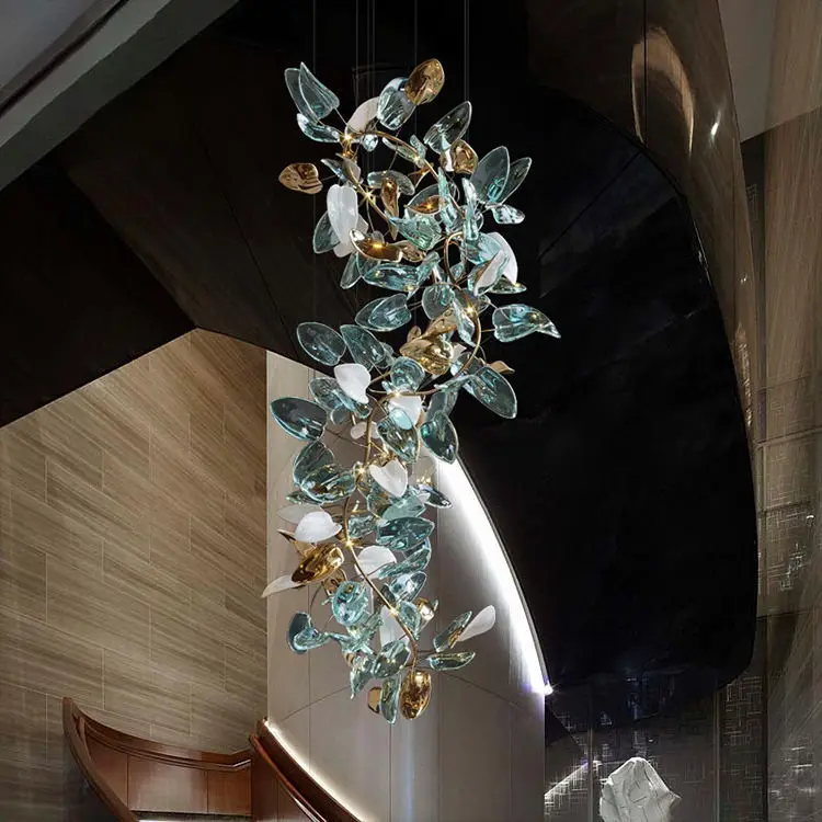 Villa Lobby Staircase Decoration Modern Hand Blown Color Glass Large Long Customized Chandeliers Pendant Lights for Villa