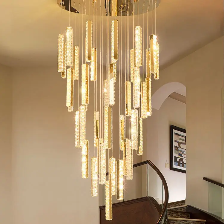 Modern Loft Story Foyer Pendant Lights Entryway Chand Duplex Building Staircase Gold Crystal Chandeliers