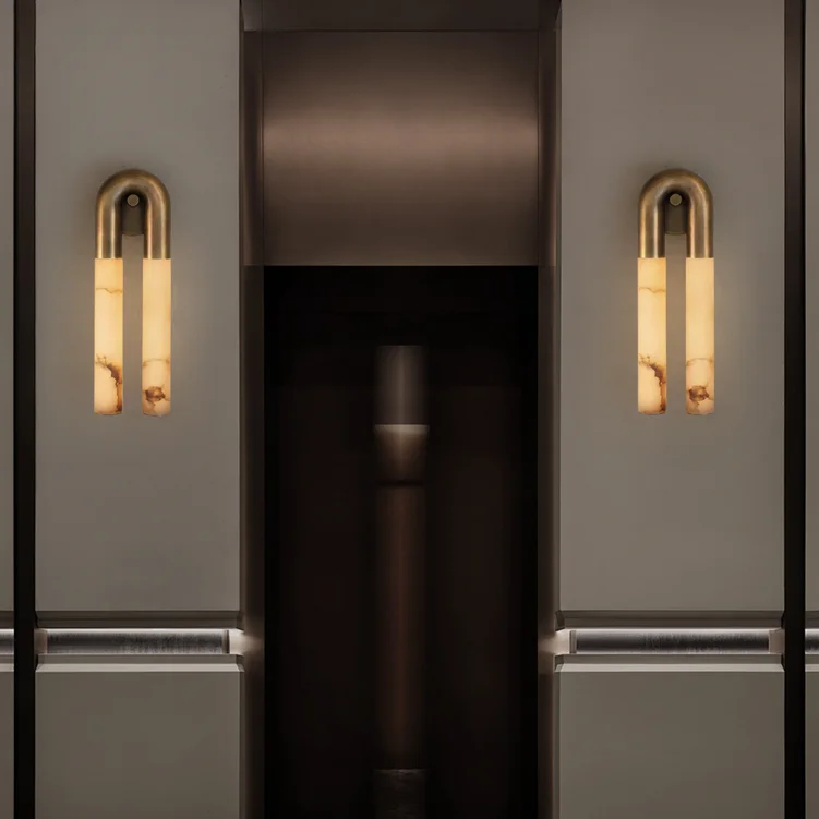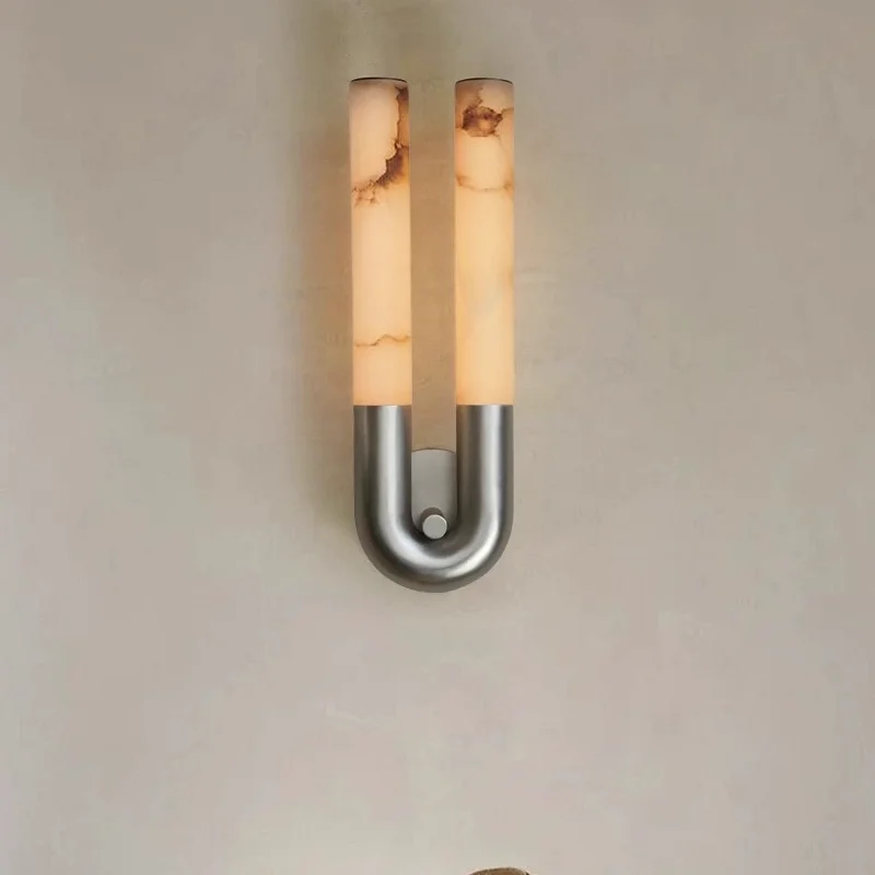Copper Wall Sconce Lamp Background Natural Marble Indoor Wall Lamps for Home Hotel Bedroom