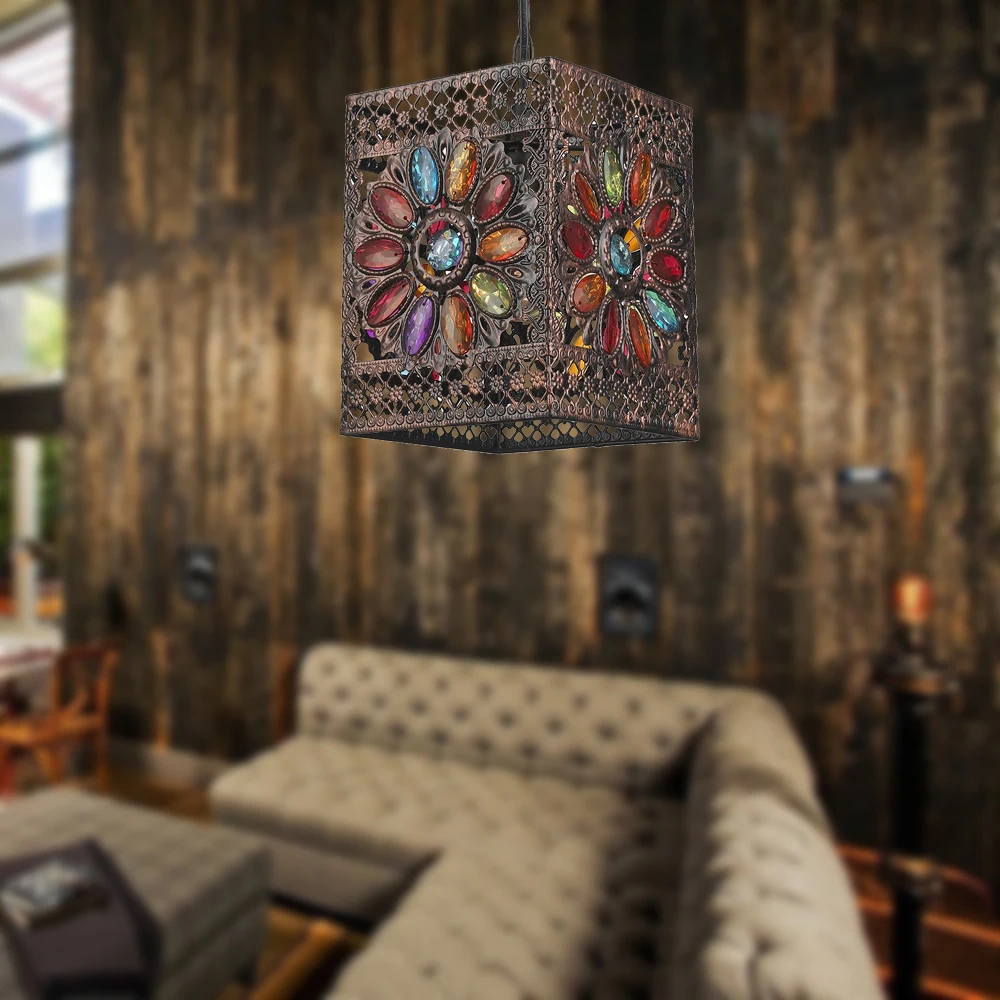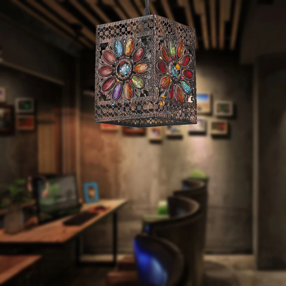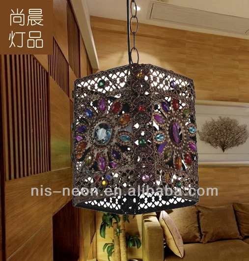 Handmade Pendant Lamp Moroccan Hanging Ceiling Light Vintage Muti-color Lantern Lamp NS-124045