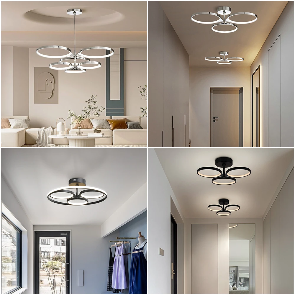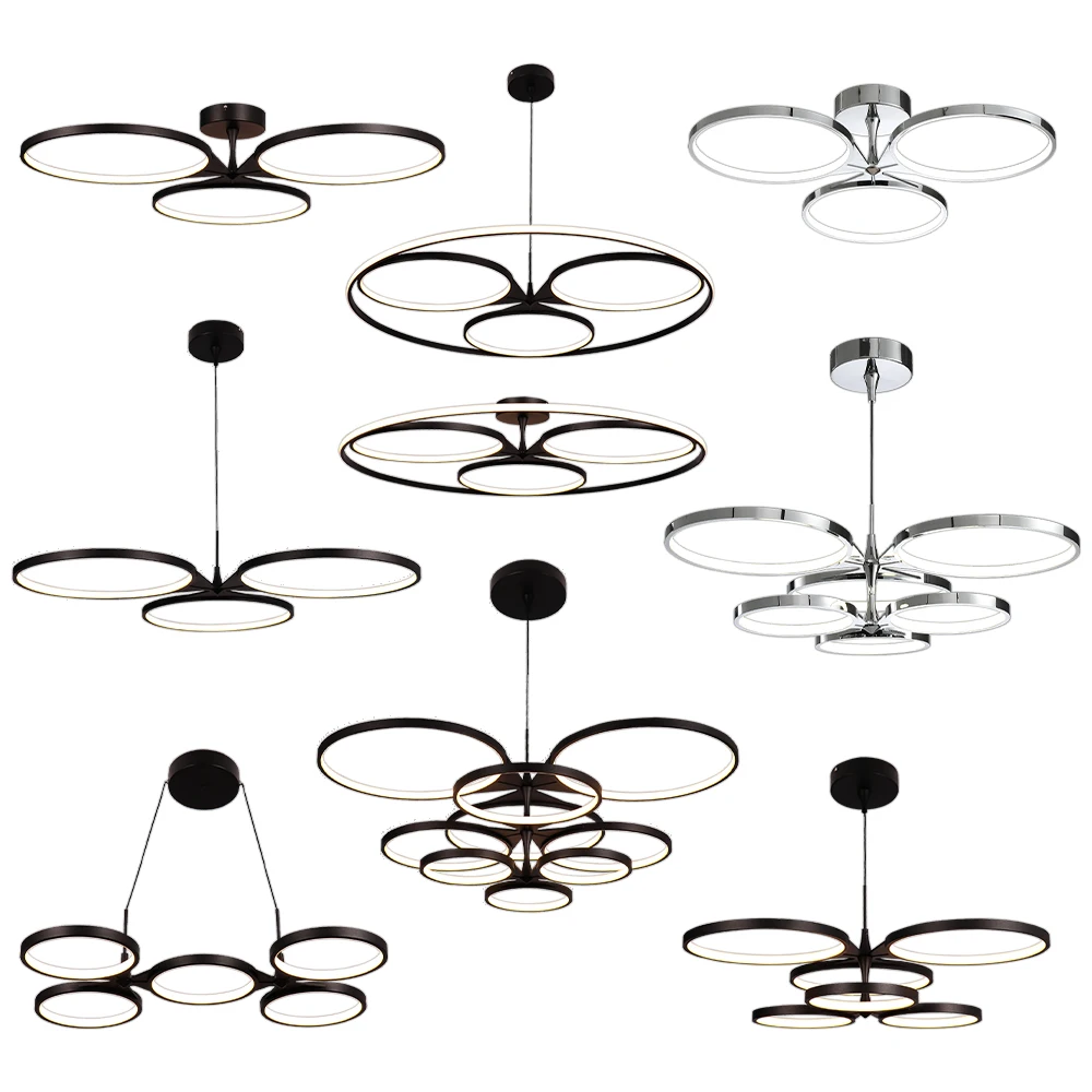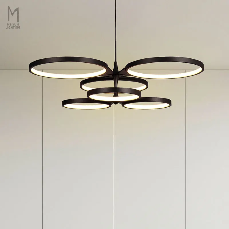New Design Round LED Chandelier Modern Style Matte Black Simple Living Room Hanging LED Pendant Lights