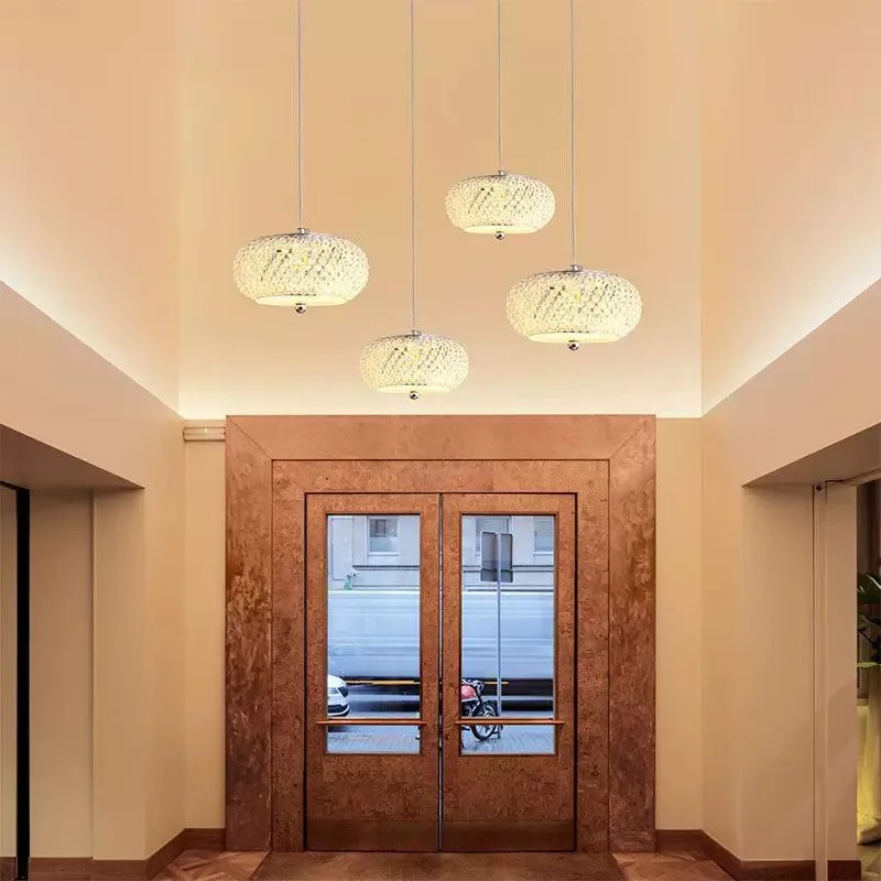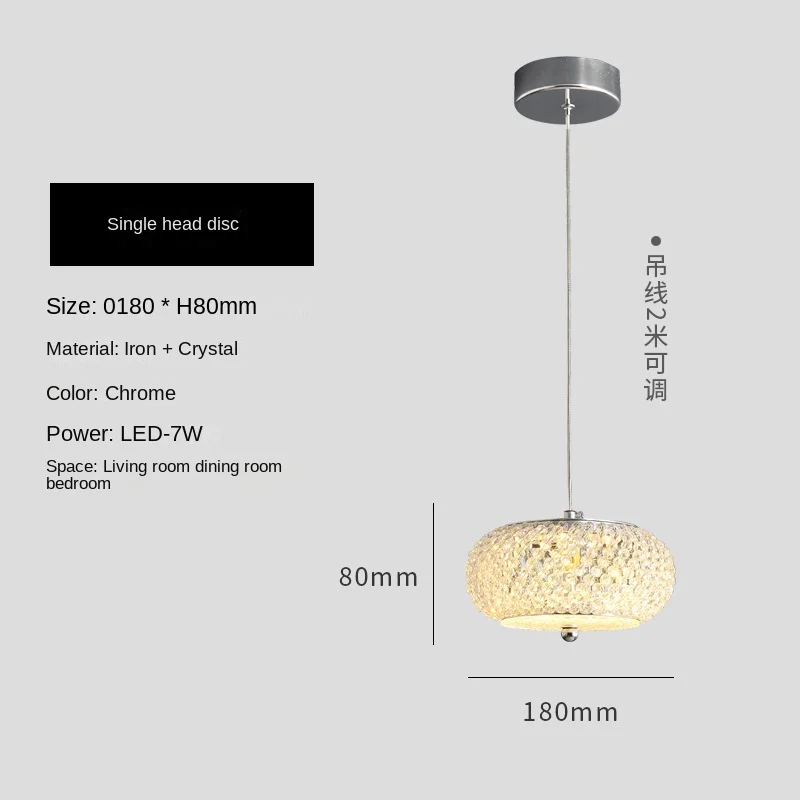 Zeal Lighting Single Head Hanging Long Line Chandelier Bedroom Bedside Chrome Crystal Pendant Light