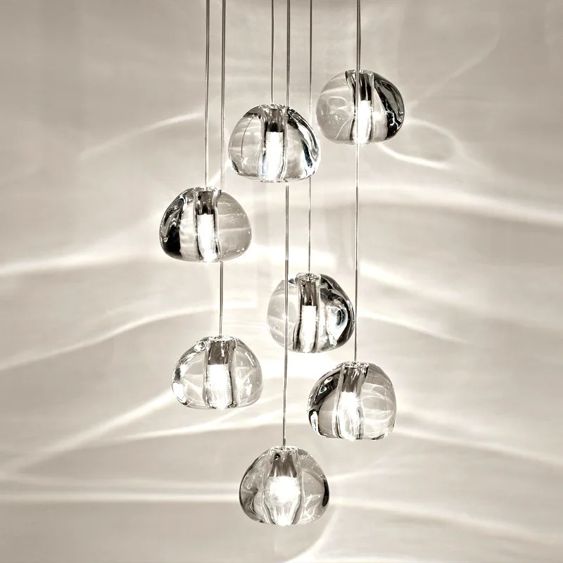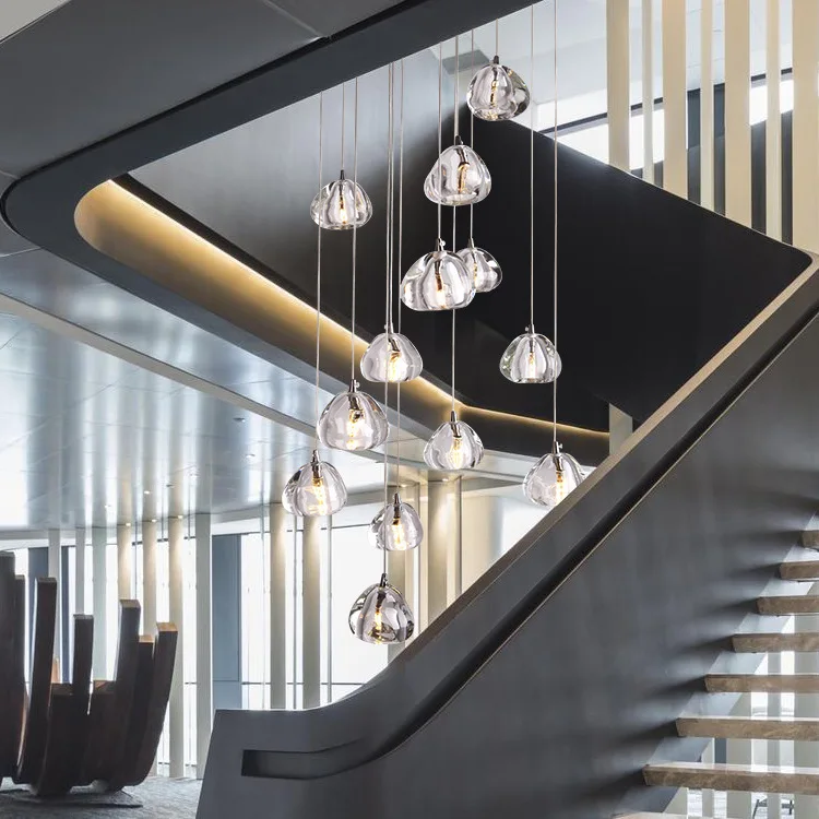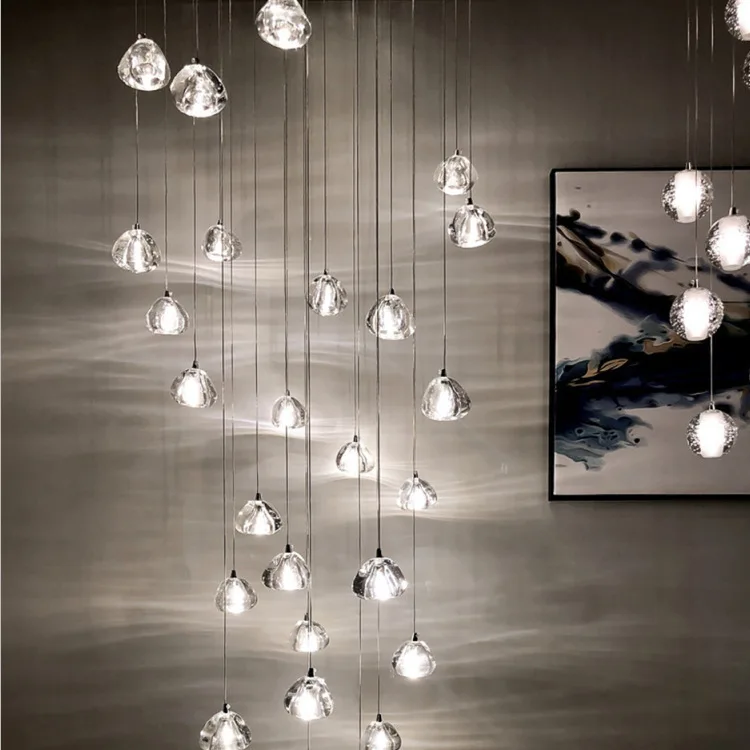 Luxury Hanging Multiple Pendant Light Led Spiral Sphere Glass Crystal Bubble Large Long Chandeliers for Stairs Ceiling