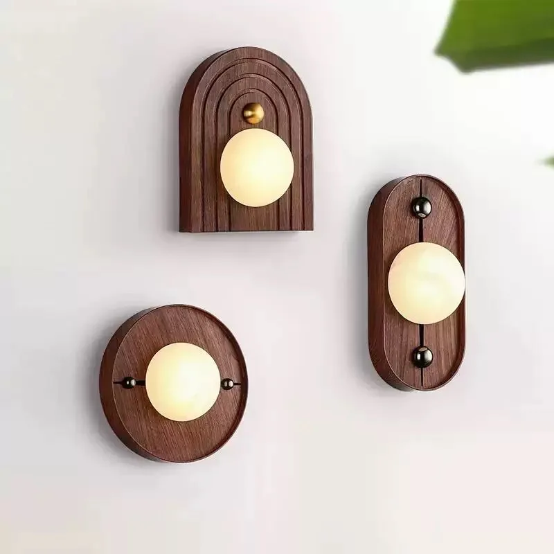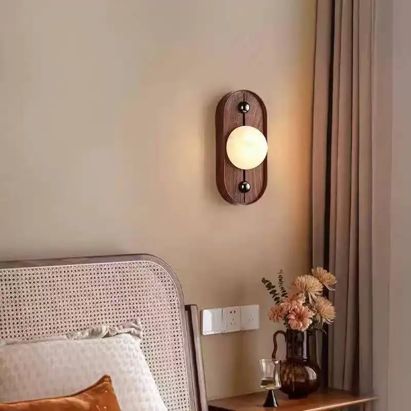 Modern Minimalist Retro Walnut Wood Grain Wall Lamp for Home Office Bedside Aisle Natural Marble Decorative Wall Lamp Recessed