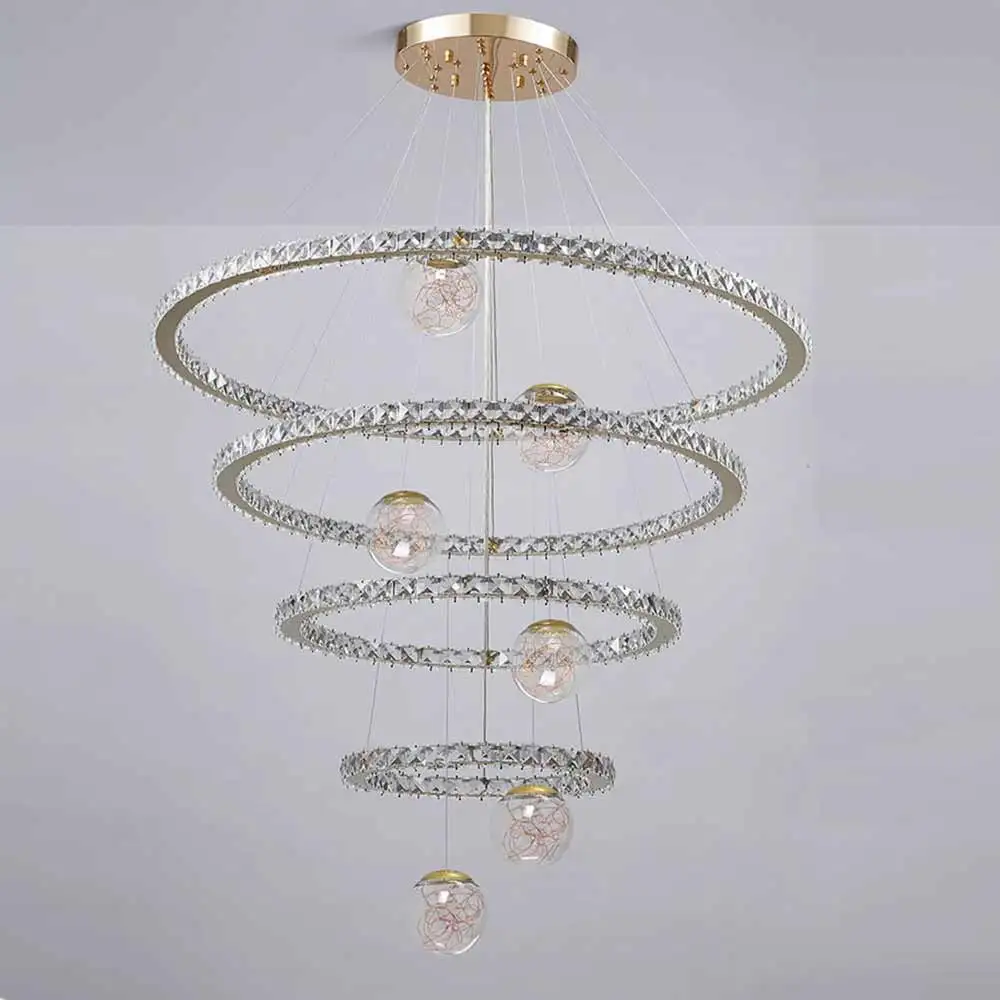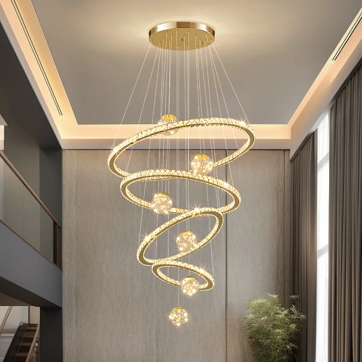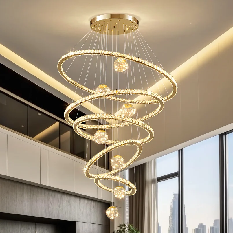 Custom Hotel Large Ring Chandeliers High Ceiling Luxury Hanging Pendant Lights Led Staircase Round Modern Crystal Chandelier