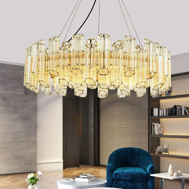 Zeal Lighting Hotel Lobby Hall Decorative Large Hanging Light Customized Long Gold Crystal Elegant Chandelier