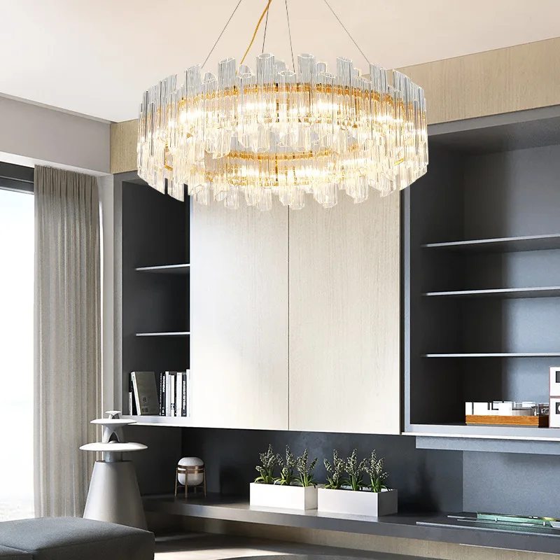 Wedding Decor Round Chandelier Lights Modern Hanging Led Ring Glass Tube Pendant Light