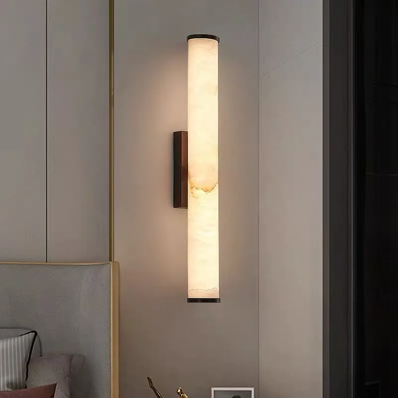 Modern Villa Living Room Background Wall Lamp Spanish Natural Marble Full Copper High-End Bedside Wall Lamp Home Office Recessed