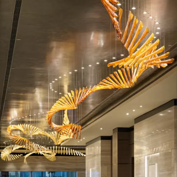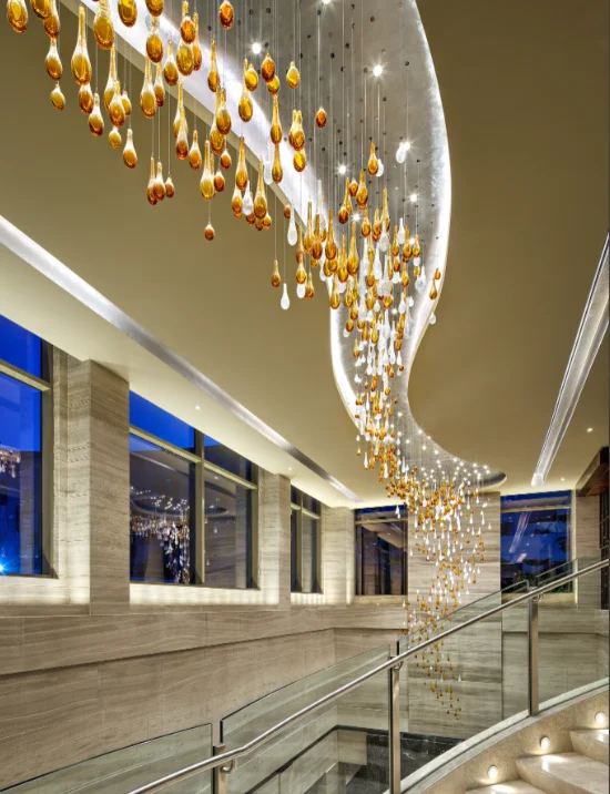 Wedding Hall Chandelier Hotel Hanging Pendant Light Customized Amber Crystal Chandelier Lighting for Lobby