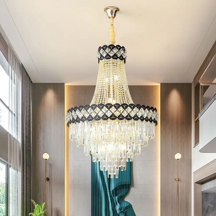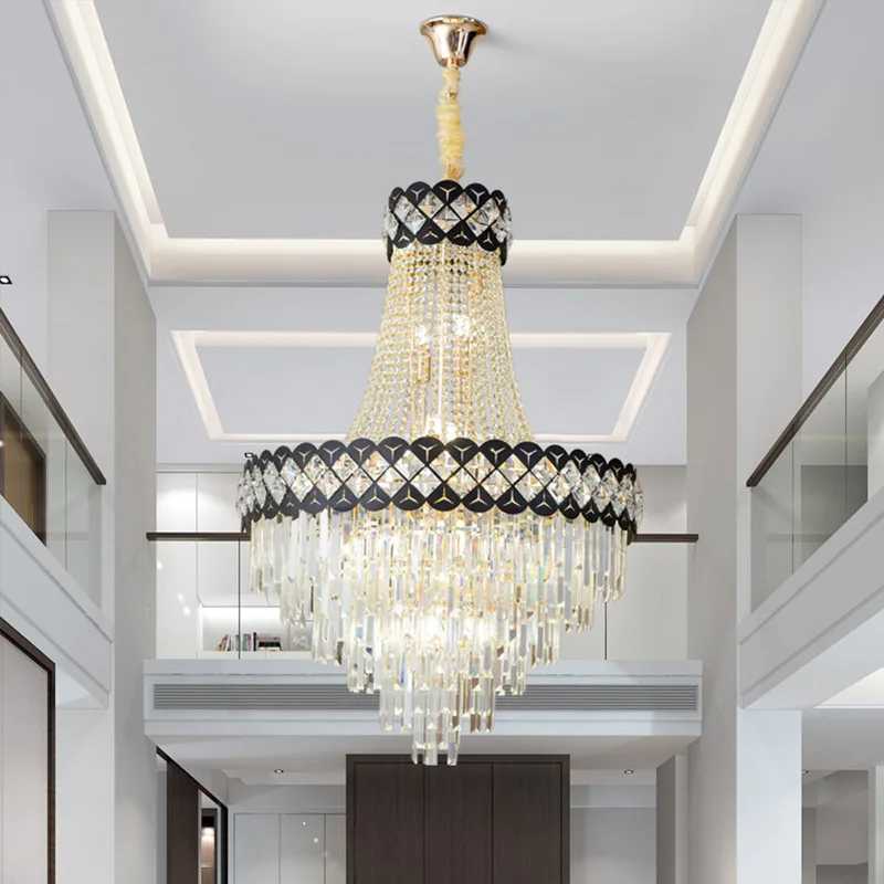 Zeal Lighting Long Stairwell Hanging Pendant Light Staircase Villa Duplex Stair High Ceiling Crystal Chandelier