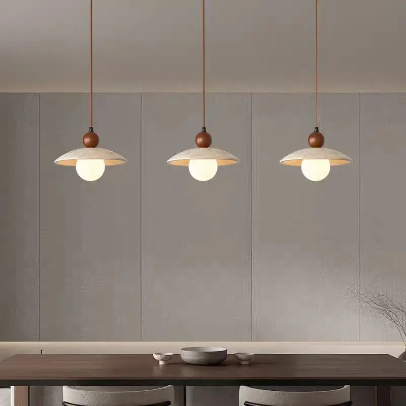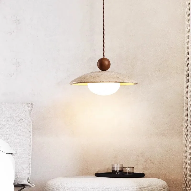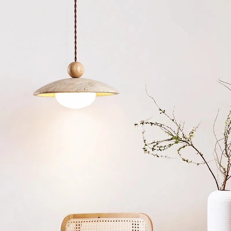 Wabi Sabi Style Yellow Cave Hanging Stone Lamp Creative Bistro Bedside Dining Room Travertine Stone Pendant Light