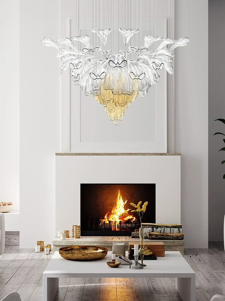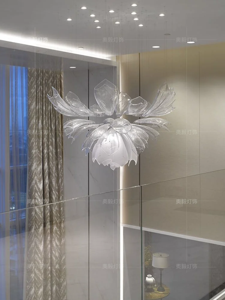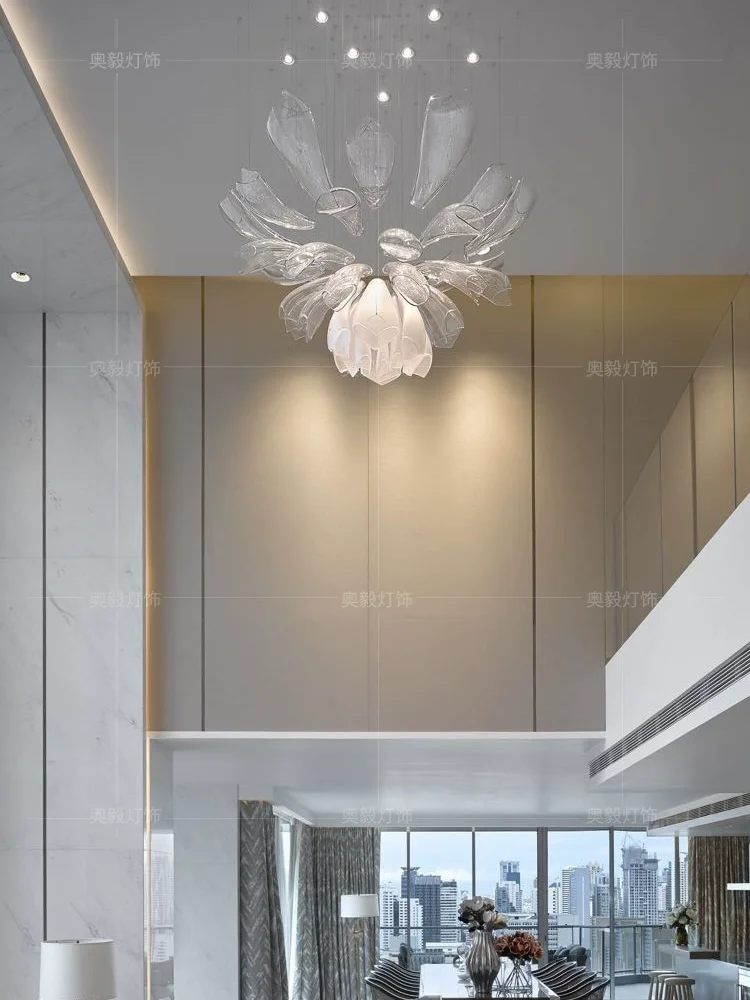 Nordic Post-modern Light Luxury Hotel Lobby Custom Lamps Sales Department Villa Living Room Petal Shape Chandelier