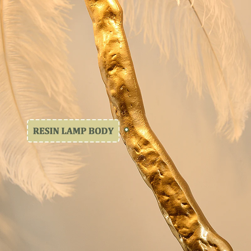 Modern Nordic Luxury Tree Branch Indoor Standing Light Resin Copper Ostrich Feather LED Floor Lamp