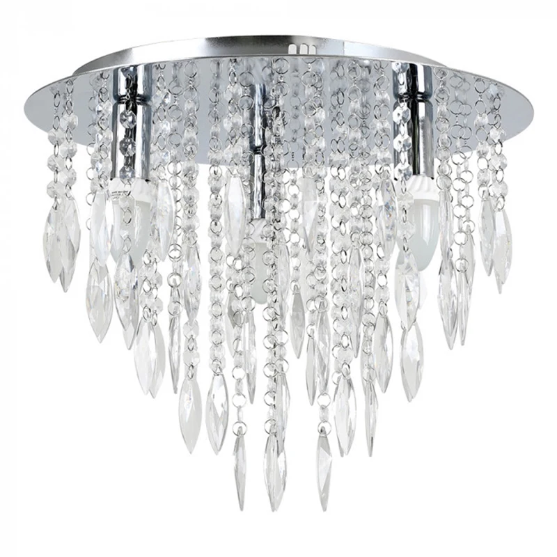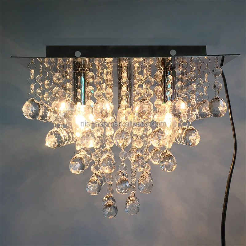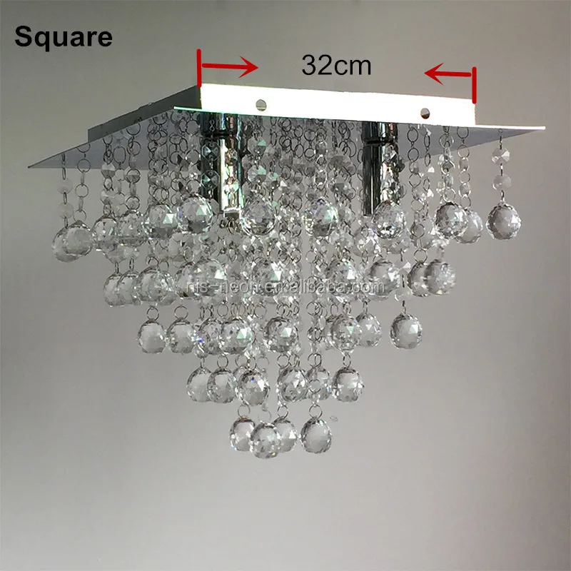 Square Modern Chrome Ceiling Lights Flush Fitting Crystal Droplet Chandelier