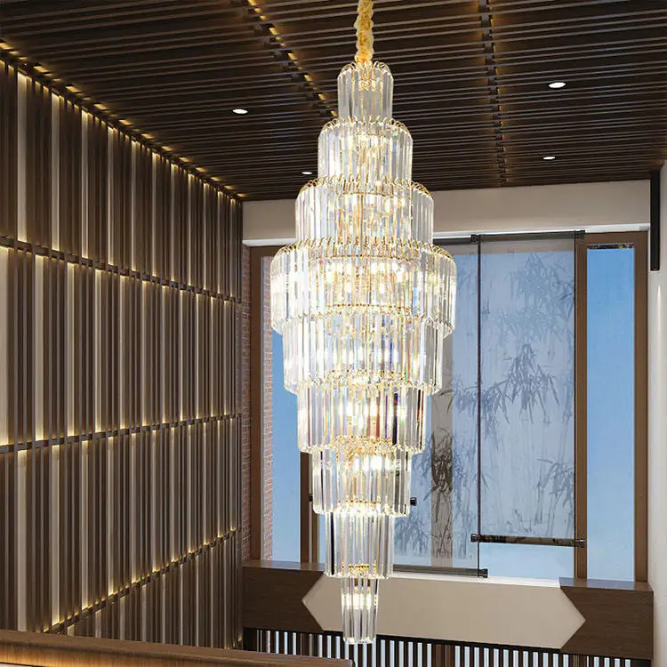 Zeal Lighting Hotel Lobby Hall Decorative Large Hanging Light Customized Long Gold Crystal Elegant Chandelier