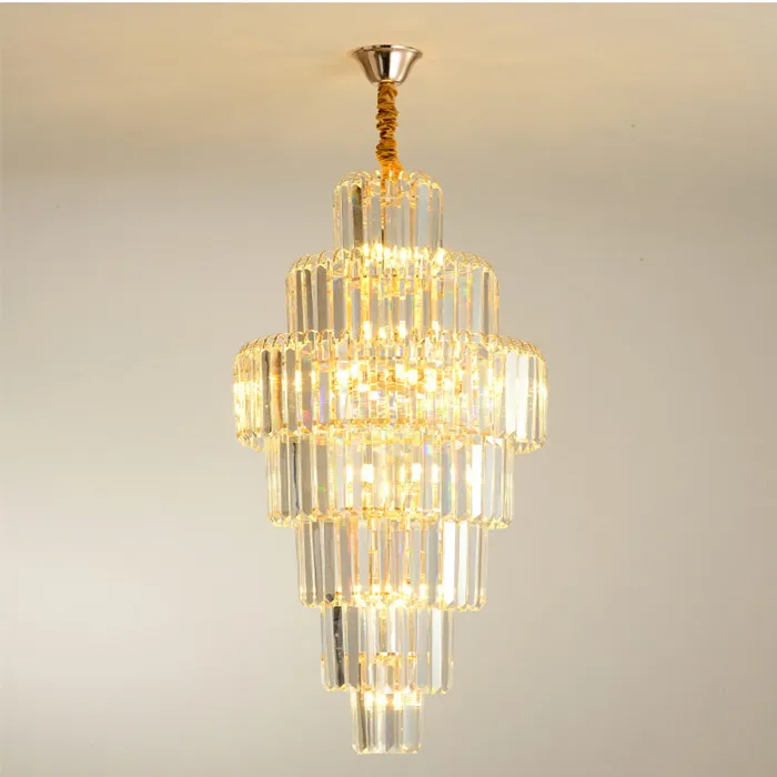 Modern Design Stair Hanging Pendant Light Villa Lobby Staircase Large Gold K9 Crystal Chandelier Light