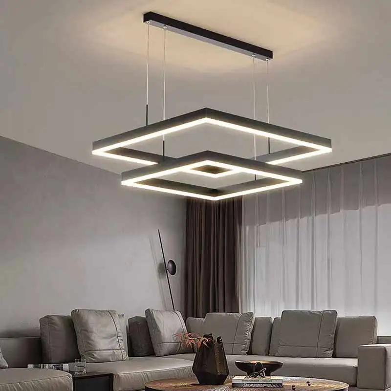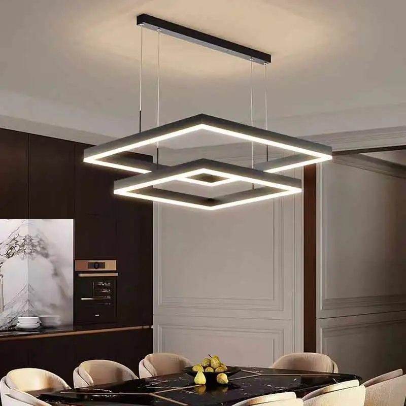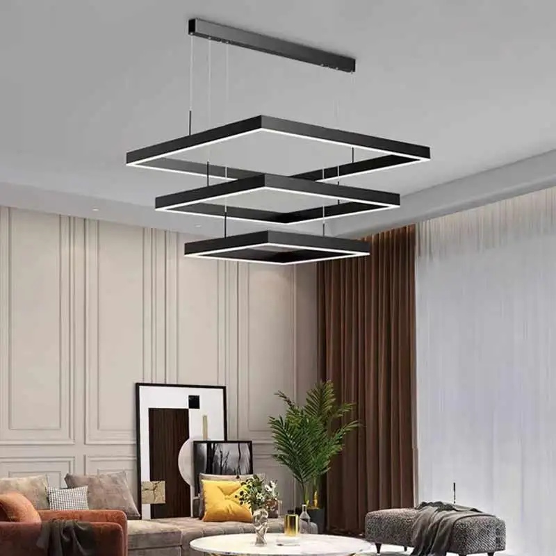 Modern Minimalist Square Three-Stripped Pendant Light Nordic Office & Bar Table Lamp for Dining Room Restaurant New Strip Design
