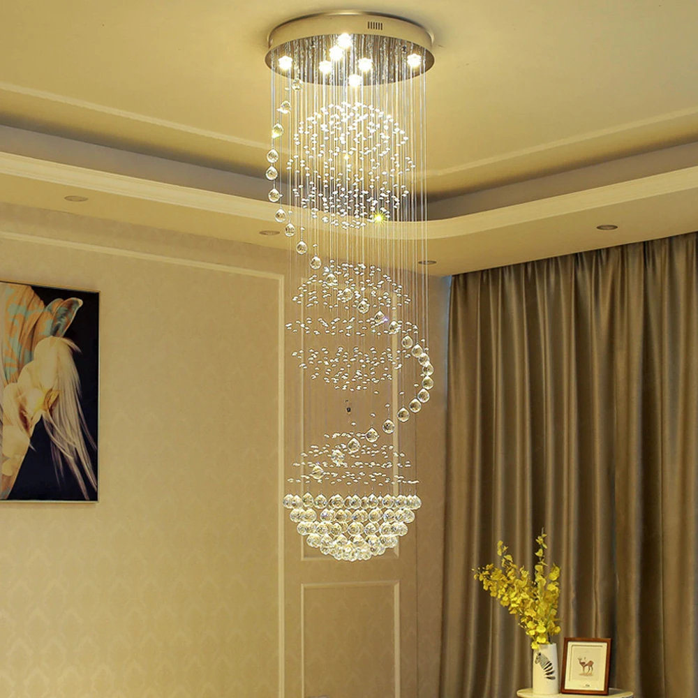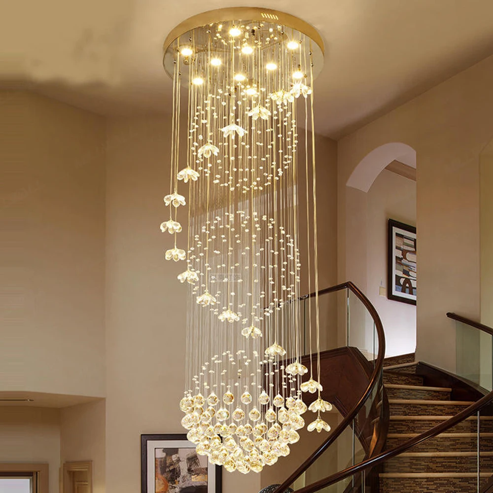 Zeal Lighting Long Stairwell Hanging Pendant Light Staircase Villa Duplex Stair High Ceiling Crystal Chandelier