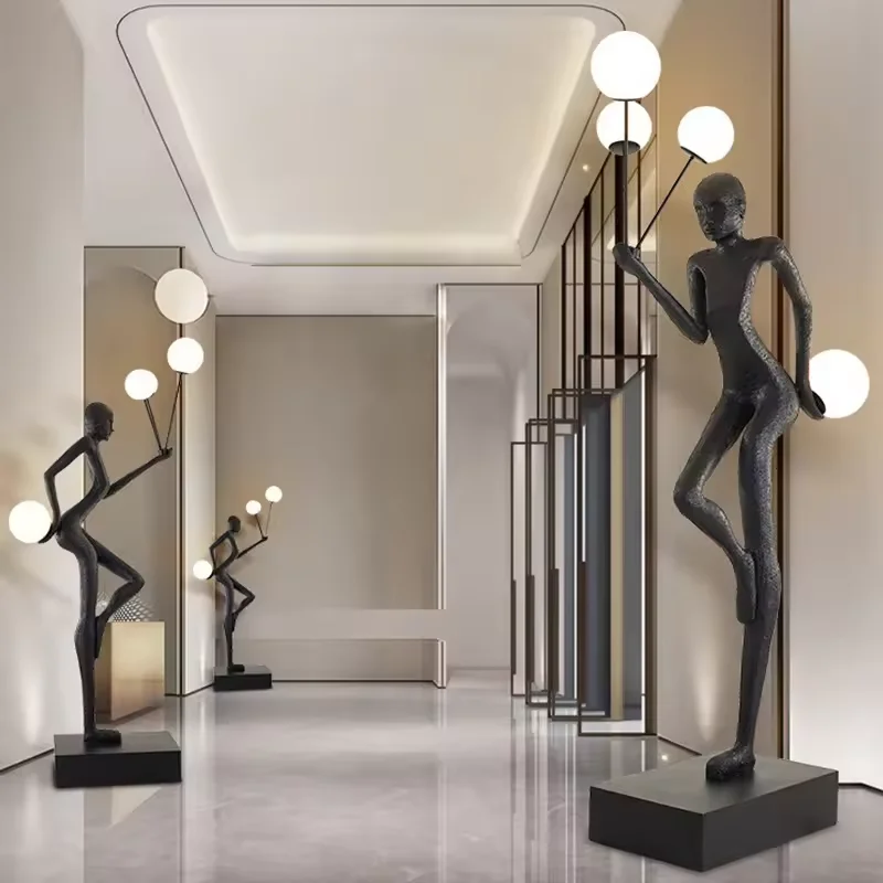 Decorative Stand Light Abstract Living Room Holding Ball Art Human Lady Sculpture Floor Lamps