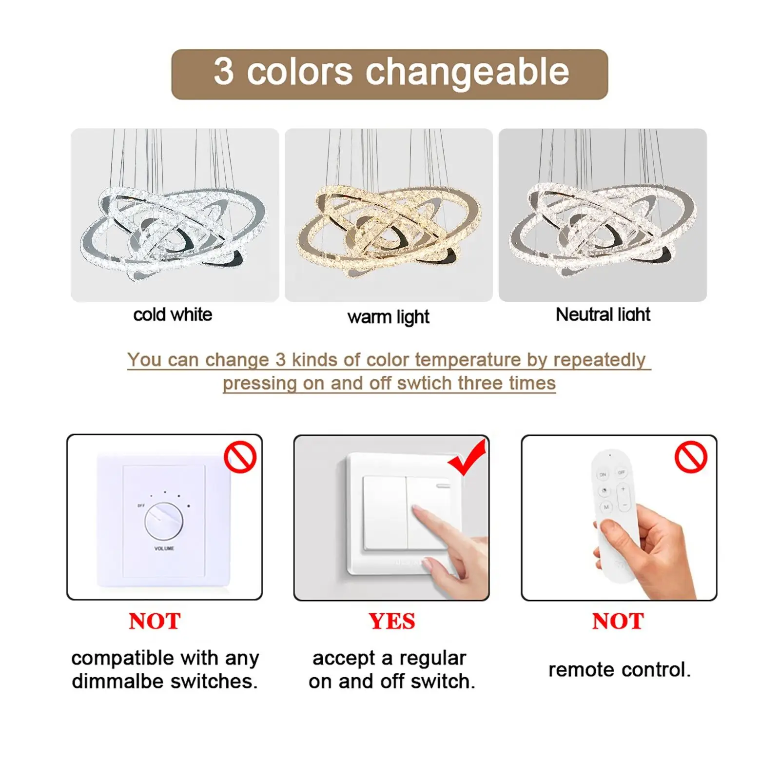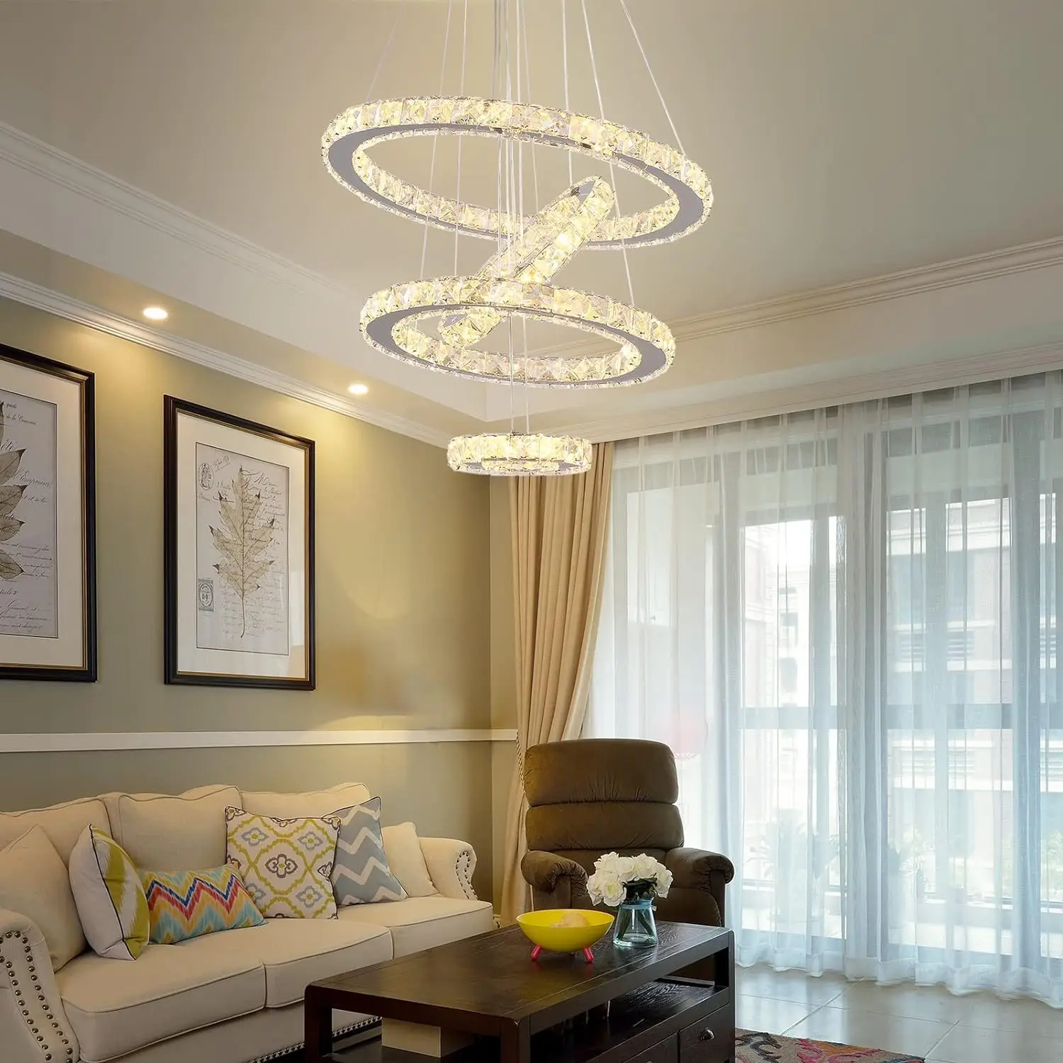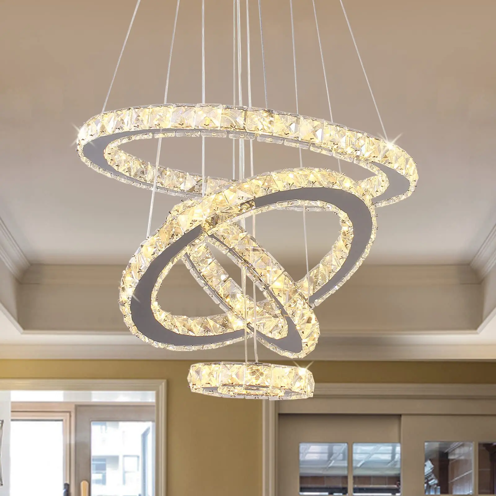 5 7 Ring DIY Creative Circular Chrome Pendant Light K9 Crystal Ring Led Chandelier Bedroom Living Dining Room
