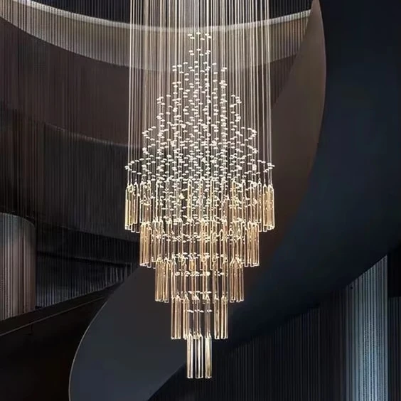 Zeal Lighting Long Stairwell Hanging Pendant Light Staircase Villa Duplex Stair High Ceiling Crystal Chandelier