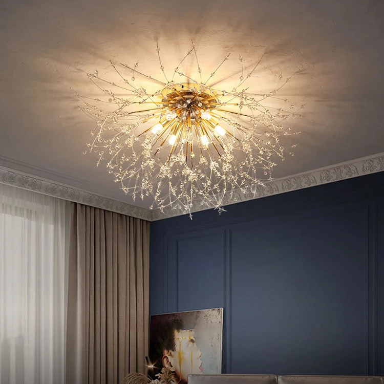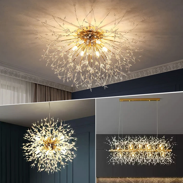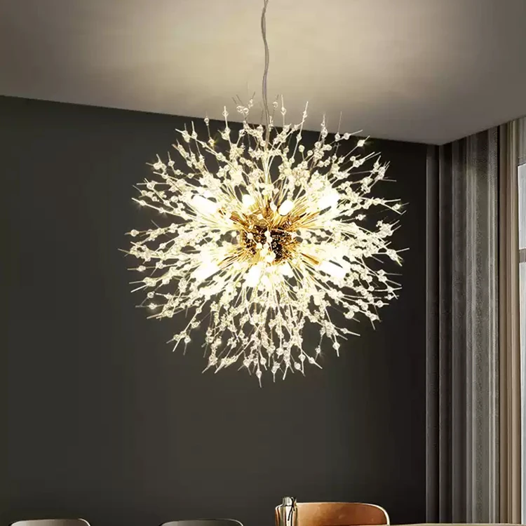 Nordic Crystal Dandelion Chandelier Lighting Kitchen Dining Room Suspension Pendant Light Stainless Steel