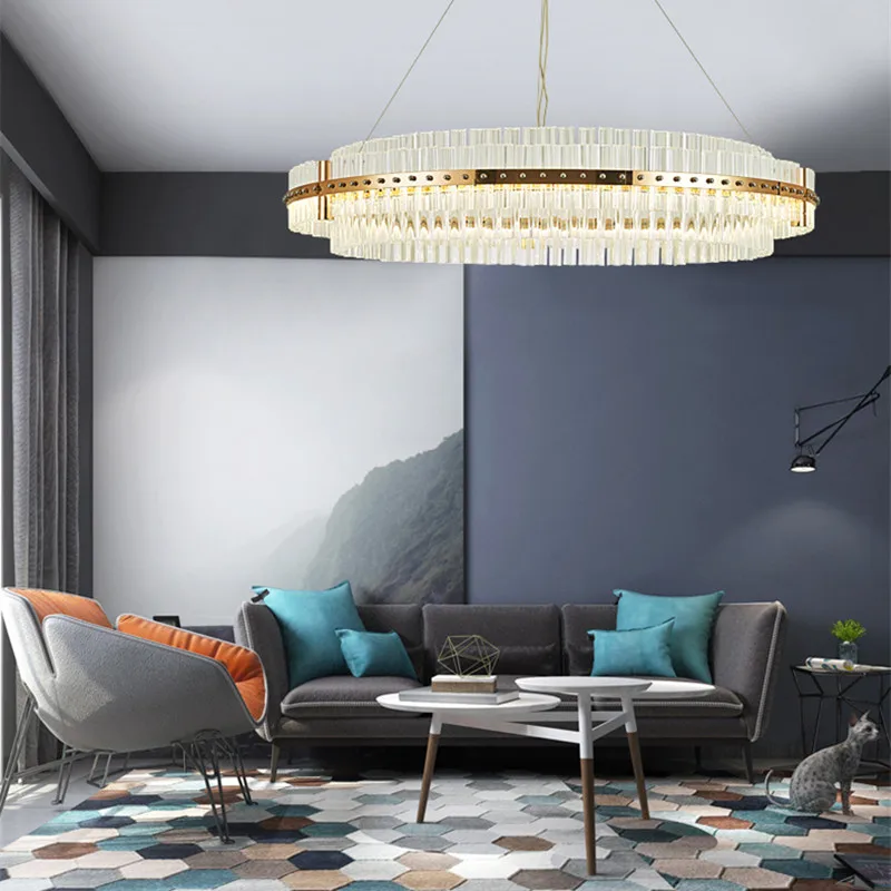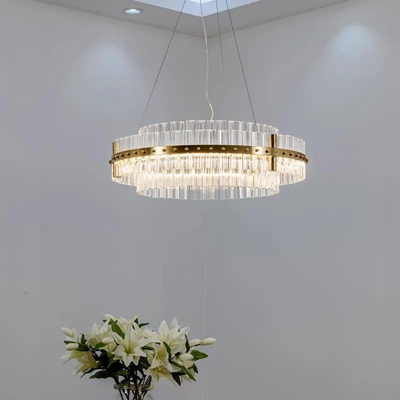 Modern Crystal Chandelier for Living Room Villa Restaurant Sitting Room with Adjustable Height Light Luxury Creative Personality