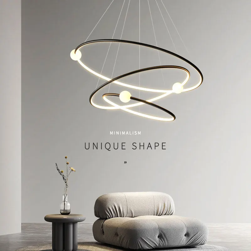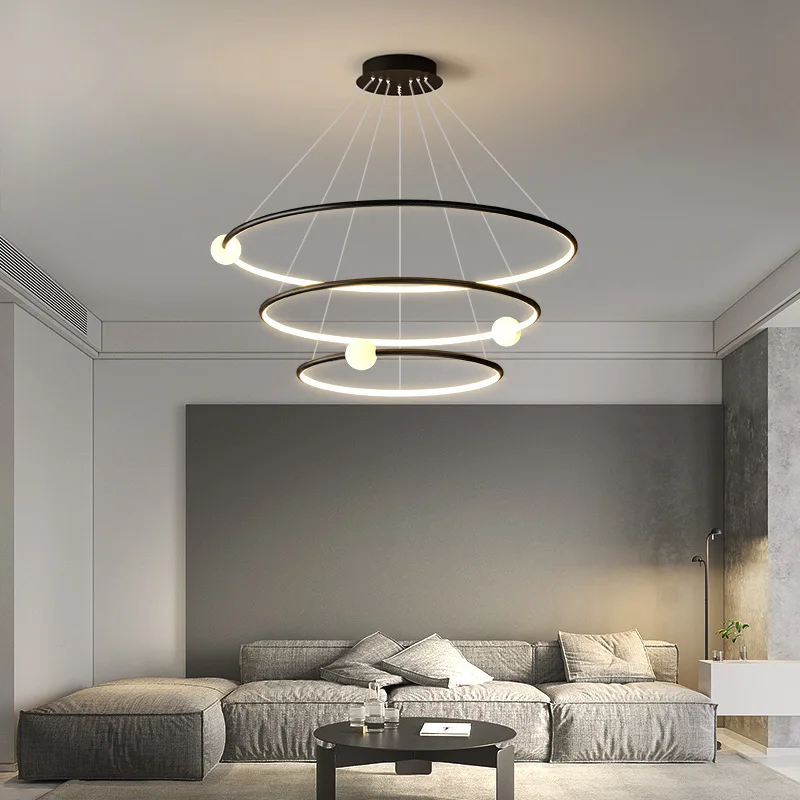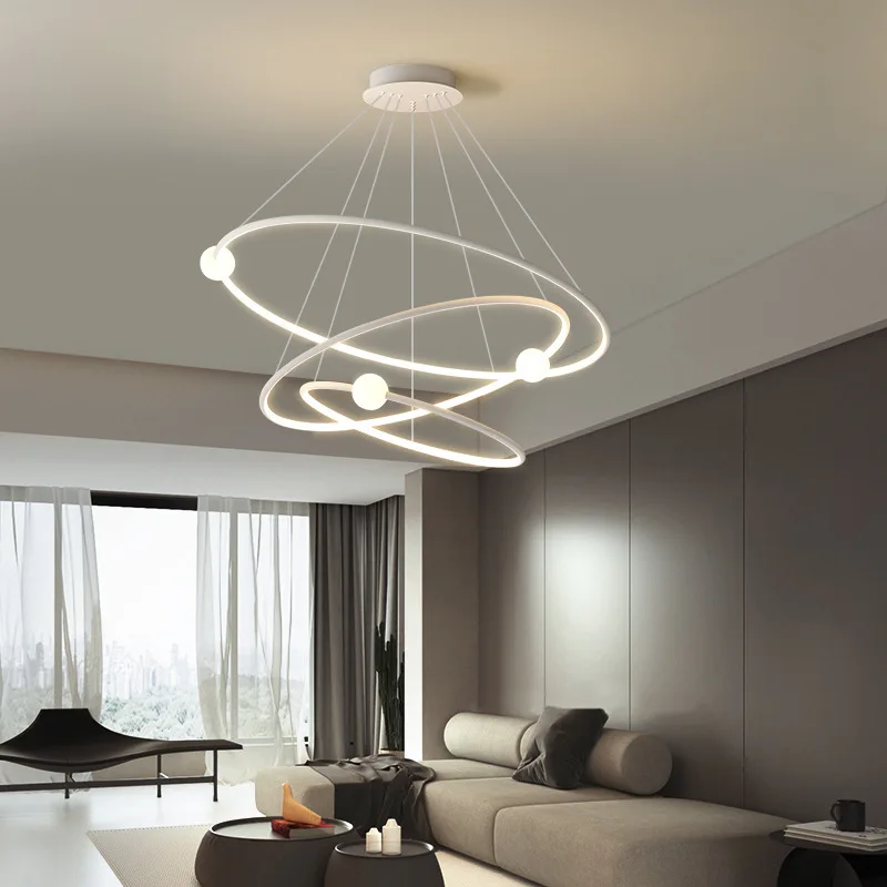 Nordic Living Room Hanging Lamp Modern Luxury LED Ring Ball Chandeliers Pendant Lights