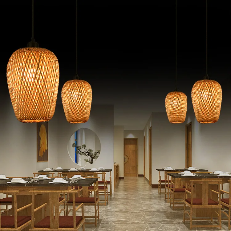 New Design Handmade Woven Bamboo Wicker Pendant Light Fixture Natural Rattan Hanging Lamps Chandelier for Home Decor Restaurant