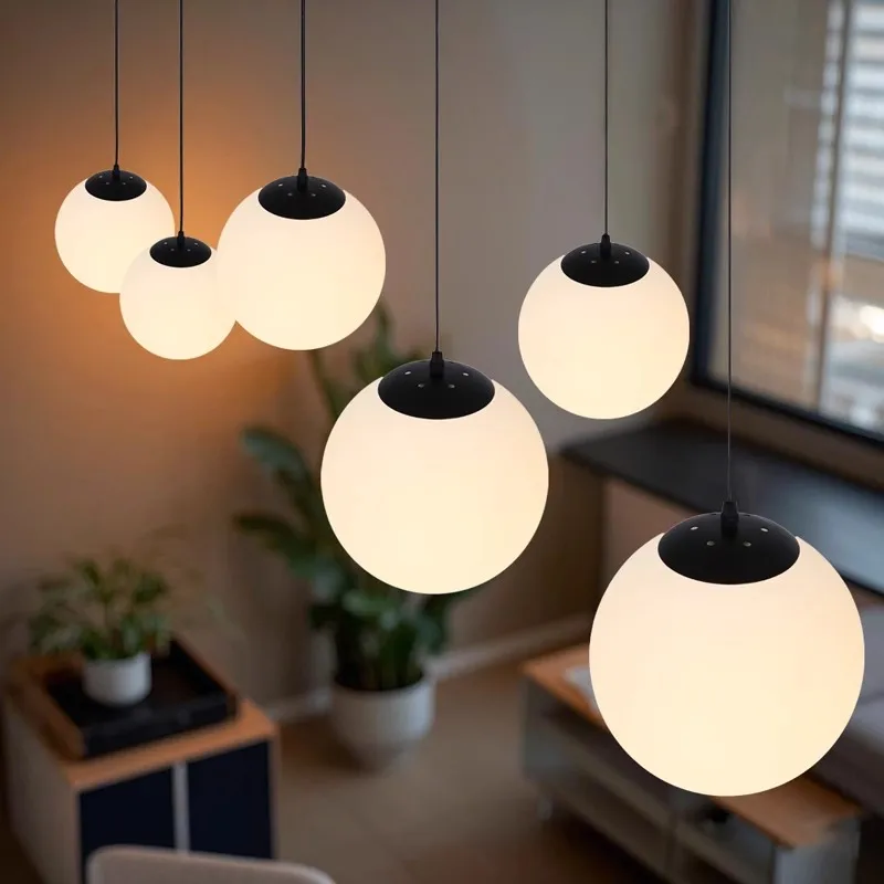 Modern Minimalist Round Bar Pendant Light E26 Iron and Glass for Restaurant Kitchen Small Lamp Sizes