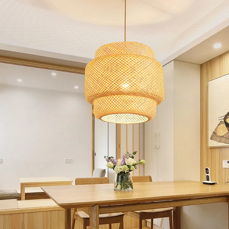 Minimalist Indoor Home Chandelier Pendant Light with Rattan Lamp Shade Cover Bamboo Wicker Lampshade for Living Room Decor