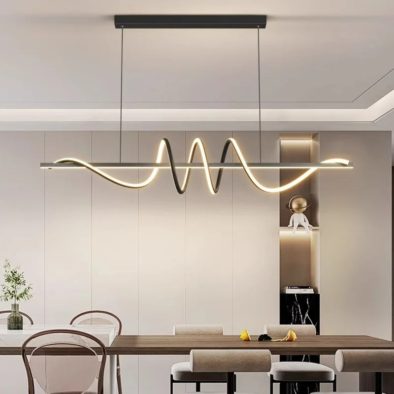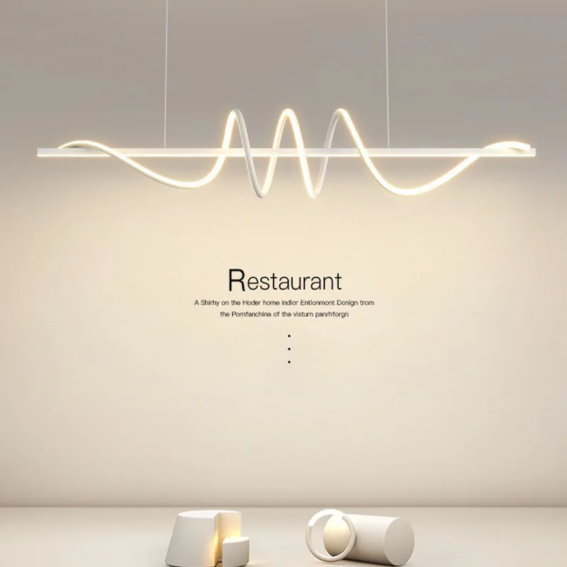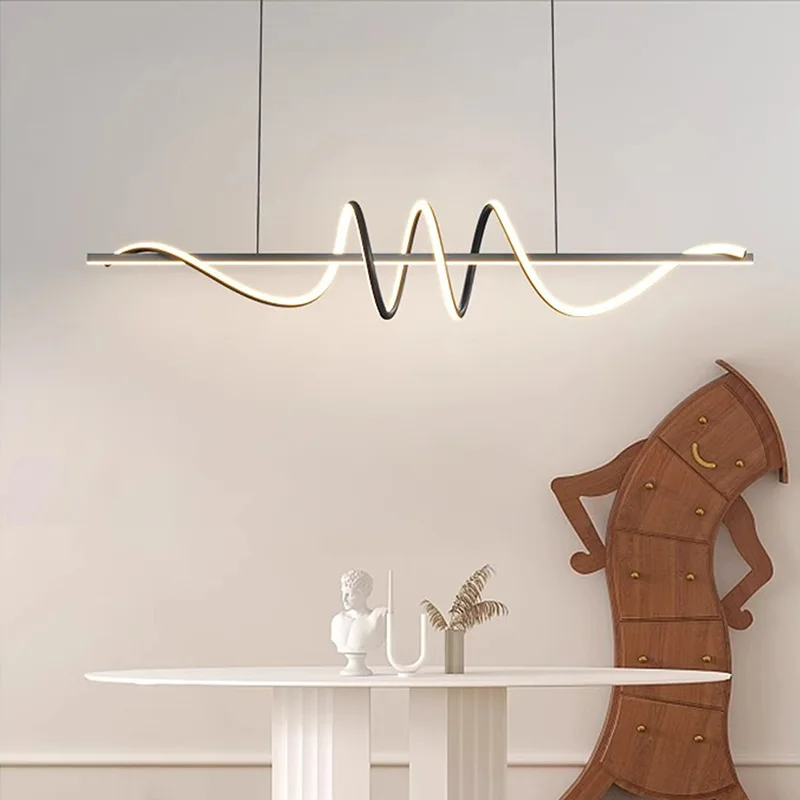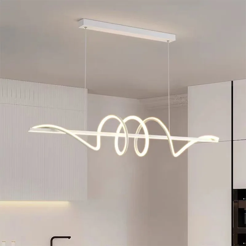 Nordic Style Simple Long Strip Chandelier Dining Room Aluminum Curved Linear Pendant Light Living Room