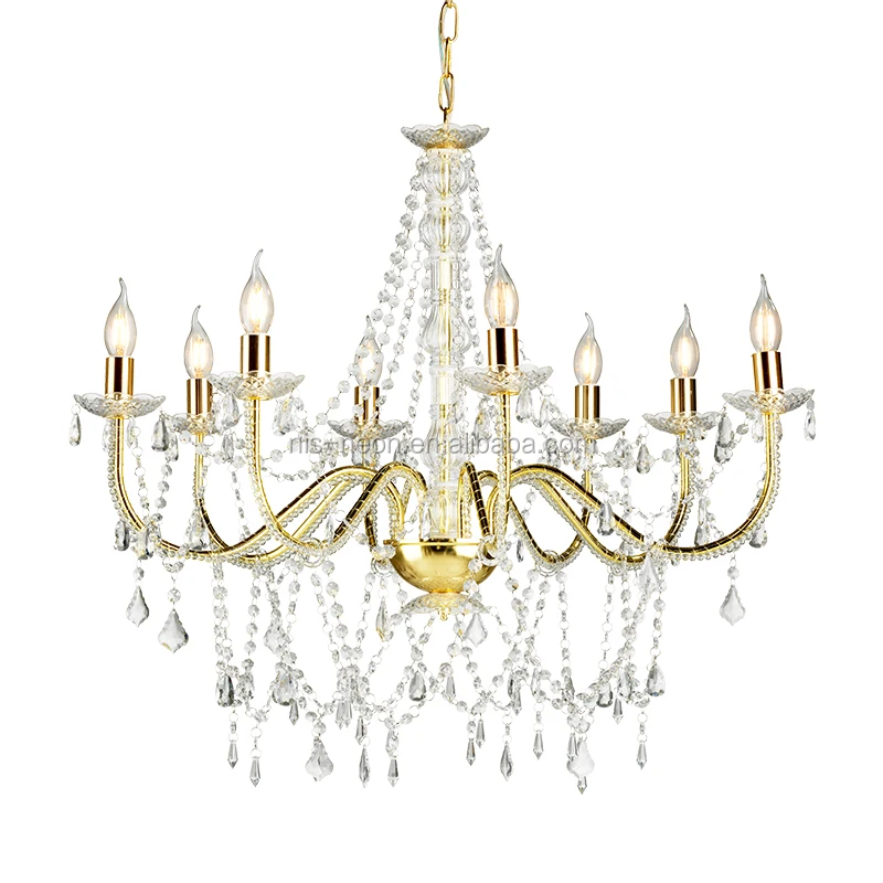 European Style Modern Luxury 8-Light Large Gold Electroplate Crystal Candle Stick Chandelier Lighting