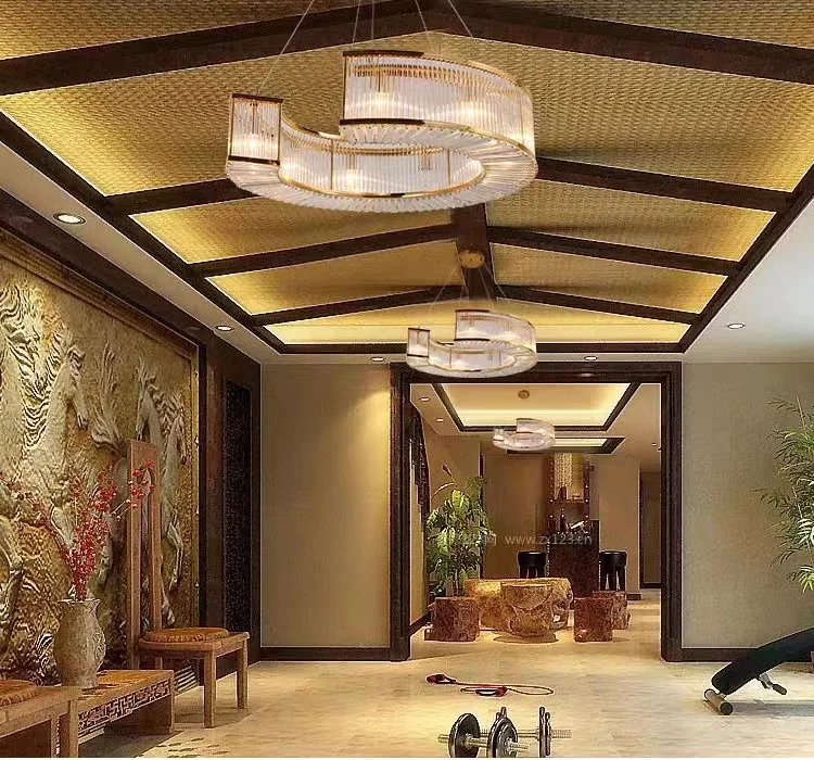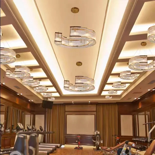 Zeal Lighting Hotel Lobby Hall Decorative Large Hanging Light Customized Long Gold Crystal Elegant Chandelier