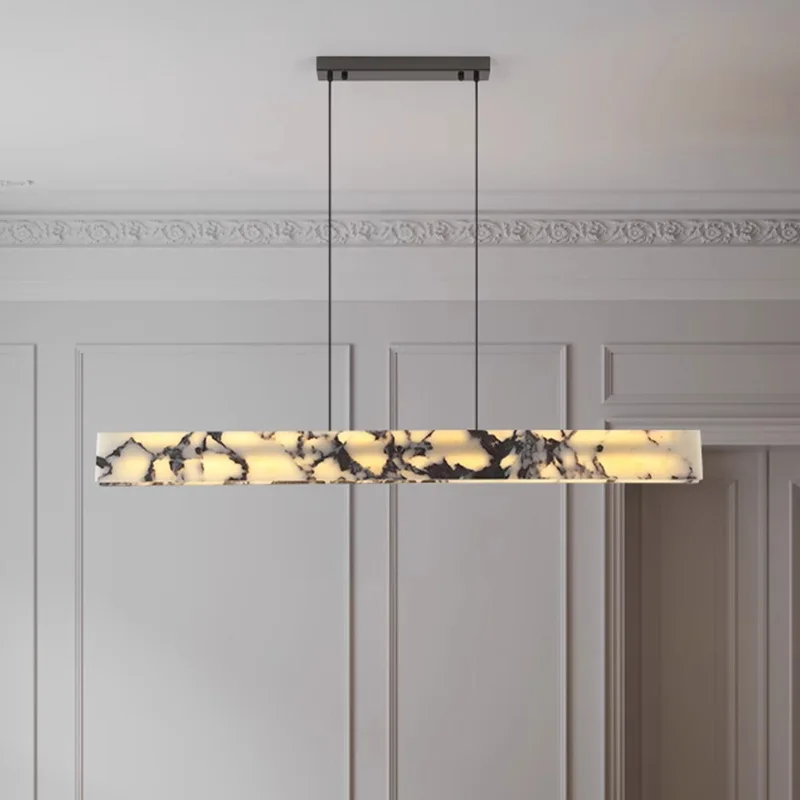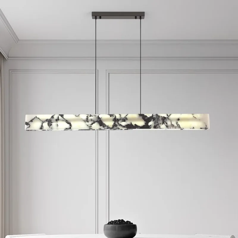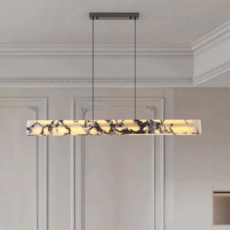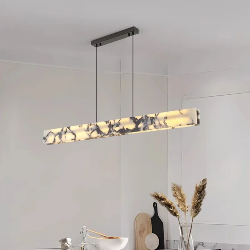Zeal Lighting Dining Room Long Strip Adjustable Chandelier Natural Alabaster Pendant Lights Kitchen