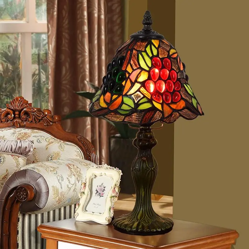 Zeal Lighting European Style Vintage Desk Light Stained Glass Gemstone Retro tiffany Table Lamp