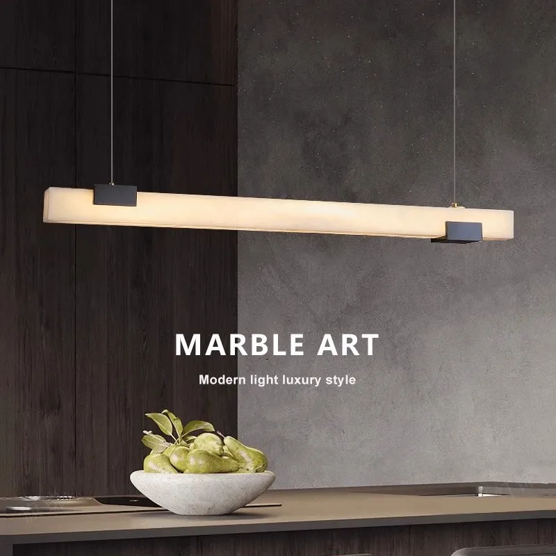 Modern Luxury Spanish Marble Straight-Line Long Strip Lamp Simple All-Copper Restaurant Chandelier Pendant Lights Designed