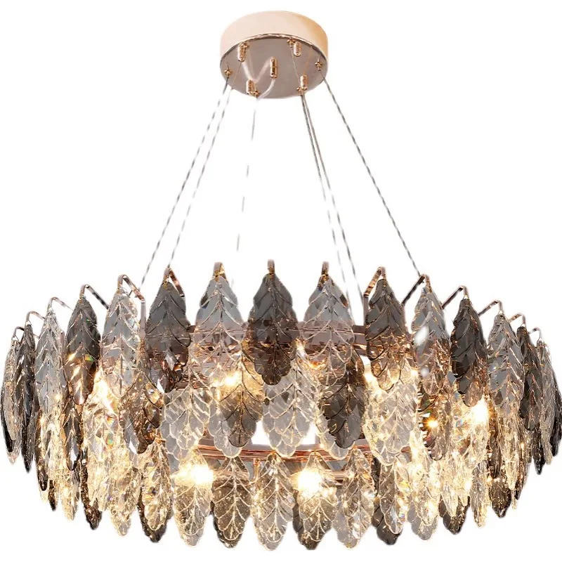 High Grade Decoration Drop Light Art Decor Living Room Elegant Modern Luxury Gray Crystal Leaf Chandelier