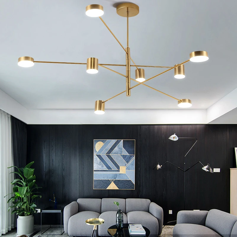 Gold LED Sputnik Chandeliers Modern Design Gold Metal LED Branches Pendant Lighting for Dining Room Living Room