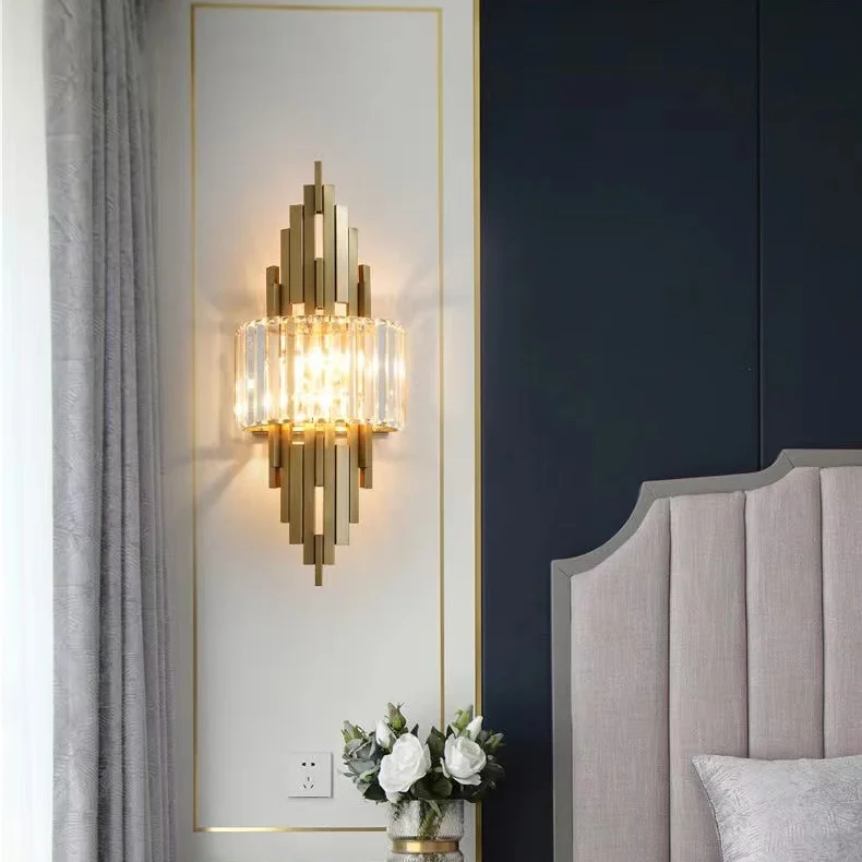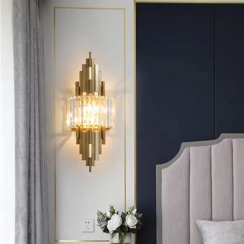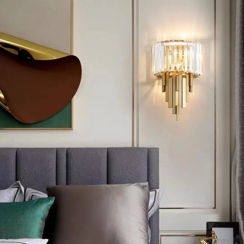 Post-modern Light Luxury Crystal Wall Lamp Living Room Bedroom Study Hotel Bedside Stainless Steel Wall Lamp