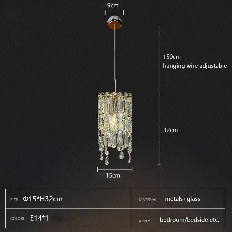 E14 Modern Luxury Lamps Wedding Crystal Round Hanging Chandelier Glass Pendant Light for Living Room Bedroom Hotel Restaurant