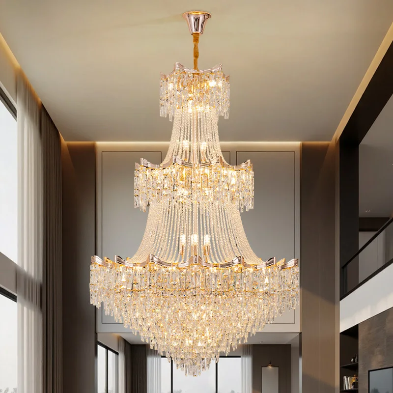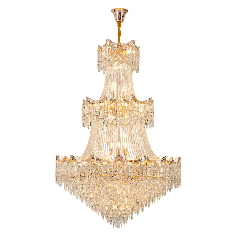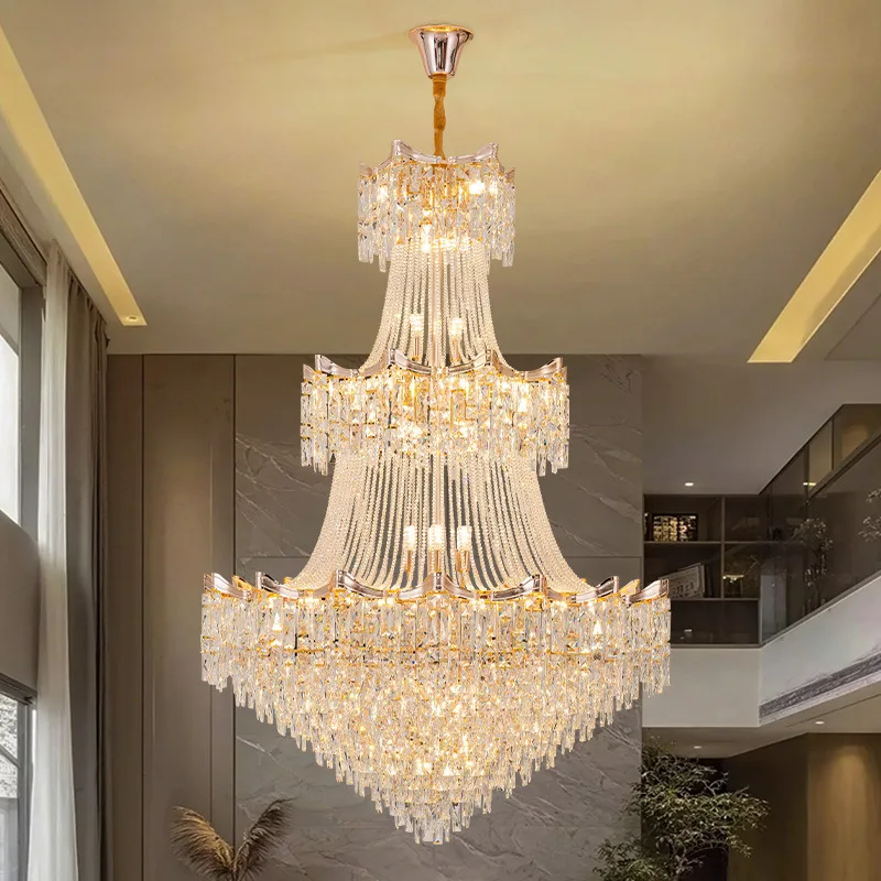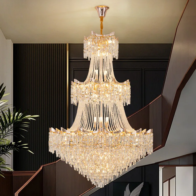 Zeal Lighting Hotel Lobby Hall Decorative Large Hanging Light Customized Long Gold Crystal Elegant Chandelier