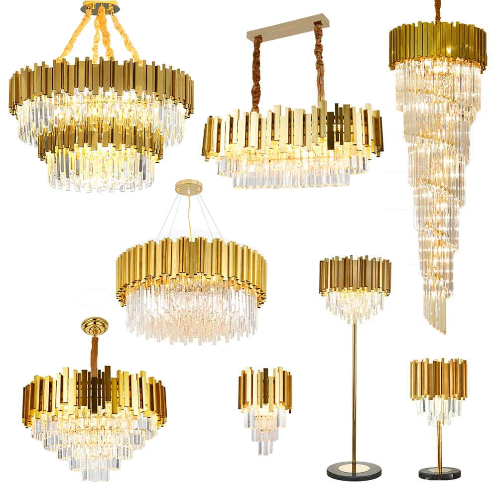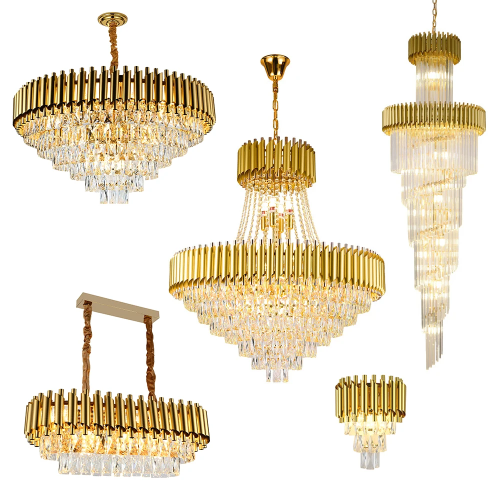 Zeal Lighting Hotel Lobby Hall Decorative Large Hanging Light Customized Long Gold Crystal Elegant Chandelier