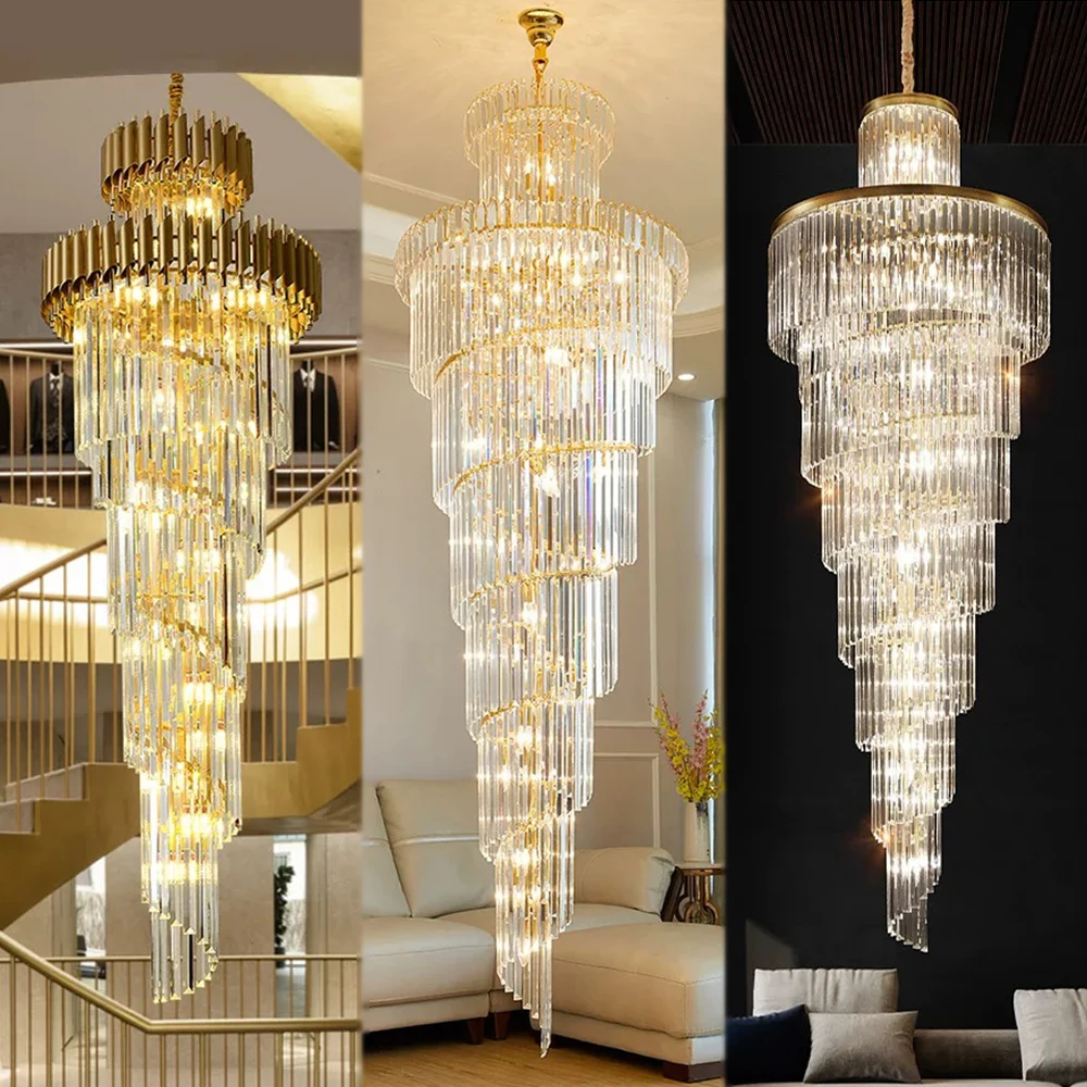 Zeal Lighting Long Stairwell Hanging Pendant Light Staircase Villa Duplex Stair High Ceiling Crystal Chandelier
